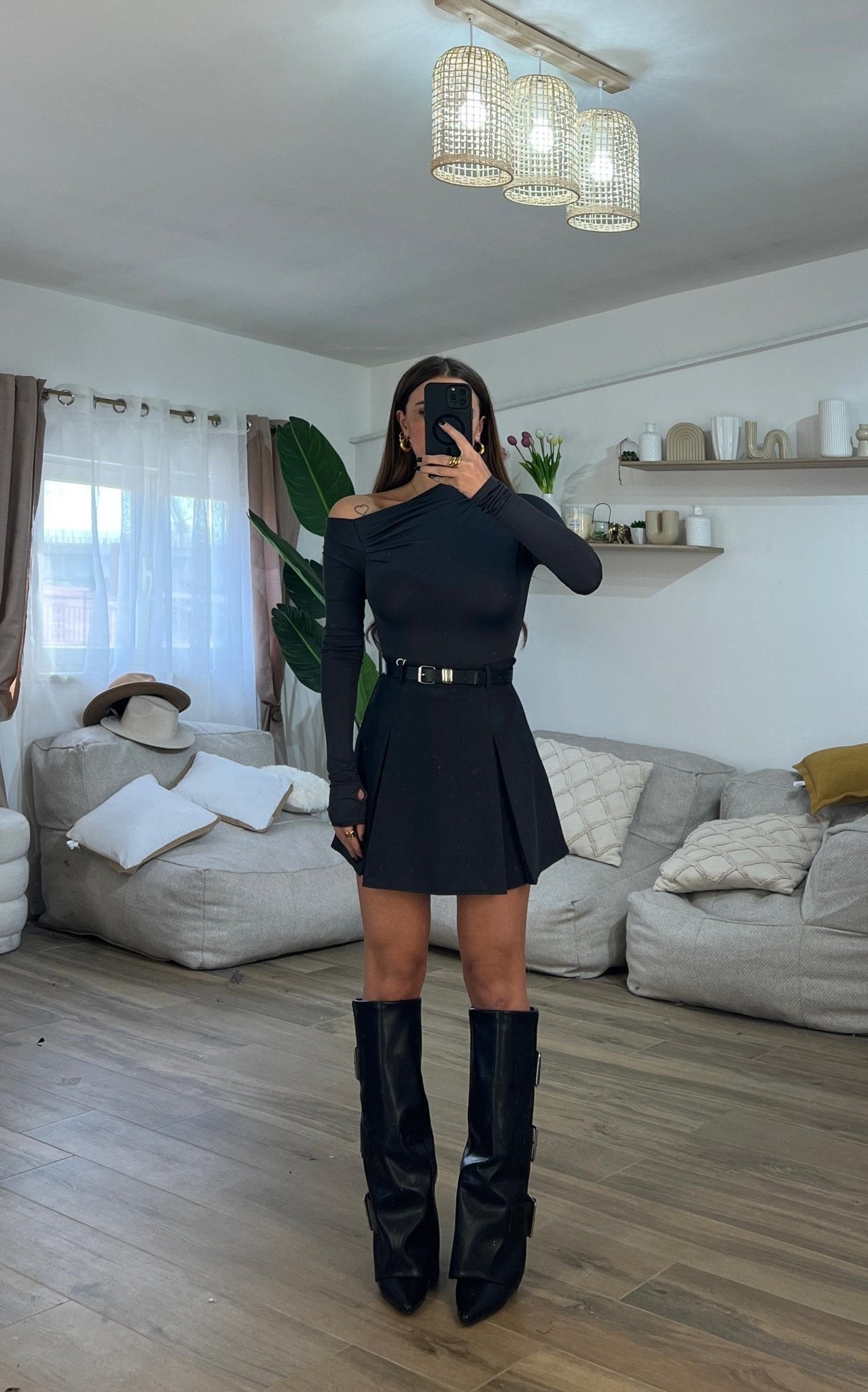 Gonna da donna con shorts inserito è cintura, veste regolarmente la propria taglia e Giusy indossa taglia S