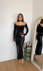 Gonna da donna in ecopelle con chiusura zip sul retro tessuto leggermente elasticizzato e vestirà bene fino ad una 42 piena