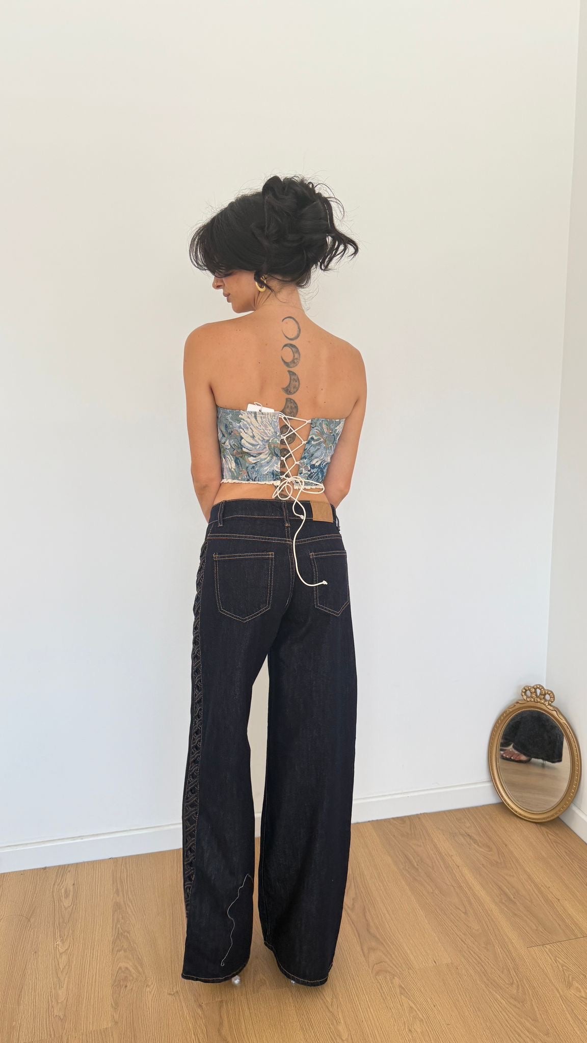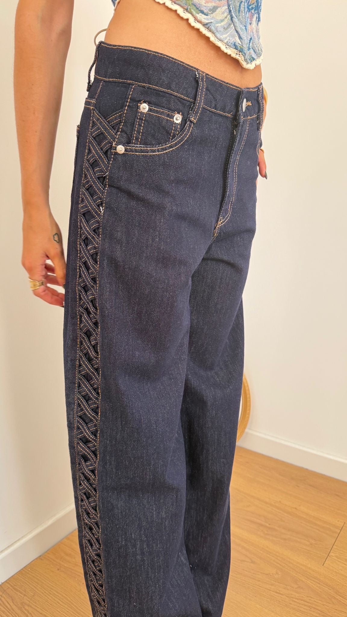 Jeans da donna in tela fissa, non elasticizzato con intreccio laterale. La modella in foto indossa taglia S e veste regolarmente la propria taglia.