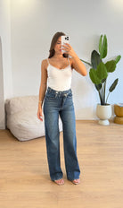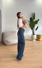 Jeans da donna in denim tessuto semi elasticizzato e veste la propria taglia e la modella indossa taglia XS