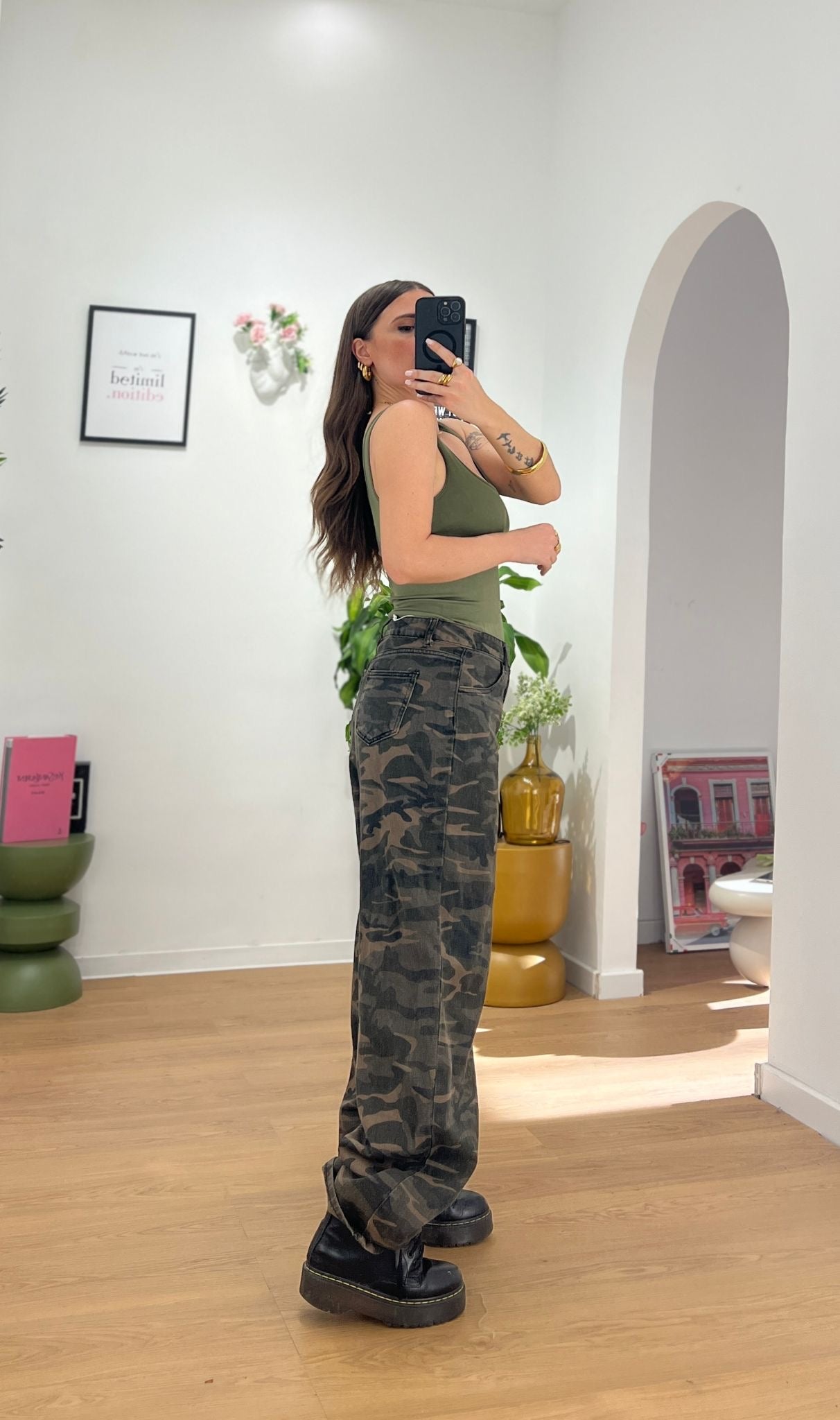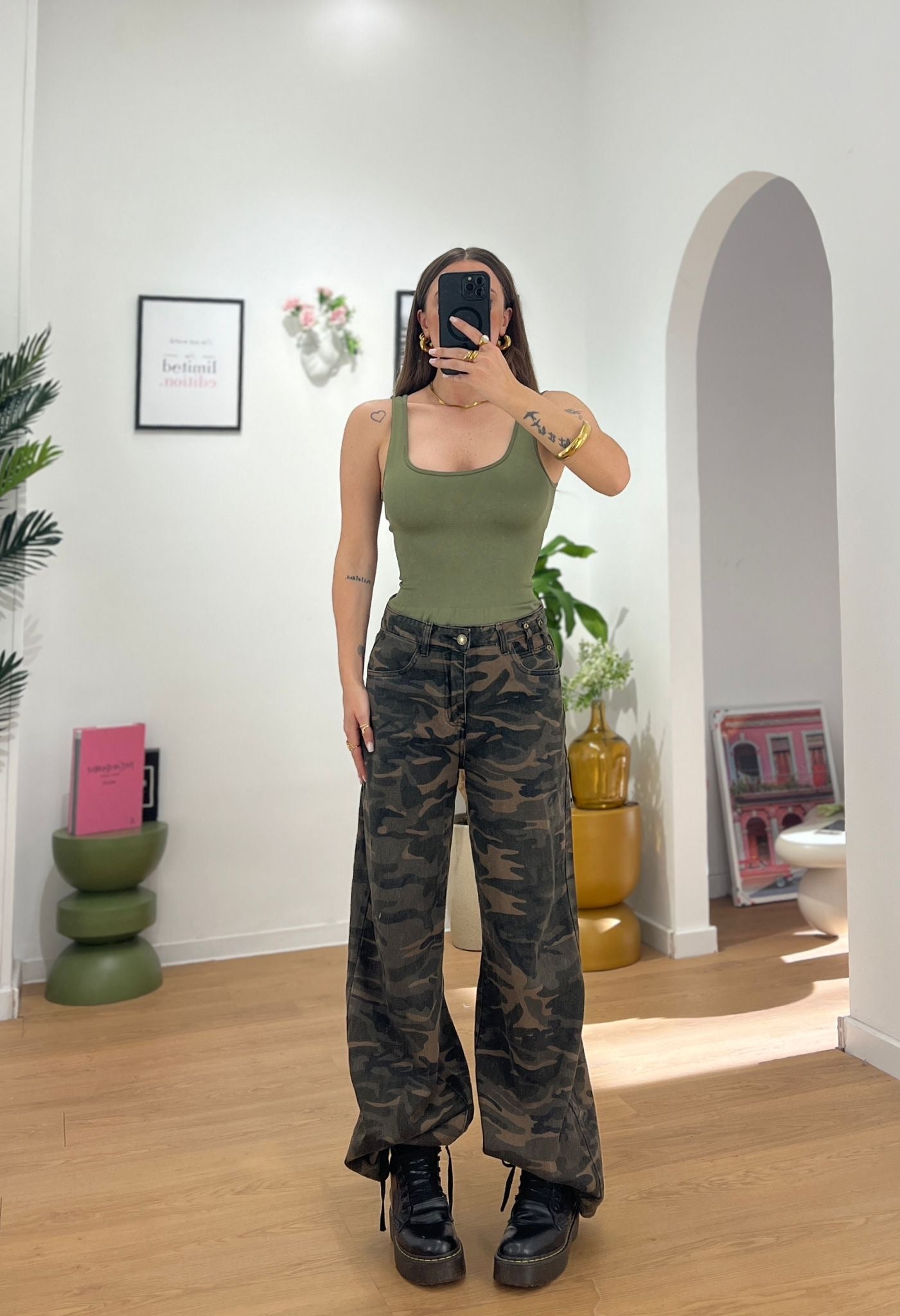 Jeans cinque tasche, modello wide leg in tela fissa. Giusy indossa la taglia S.