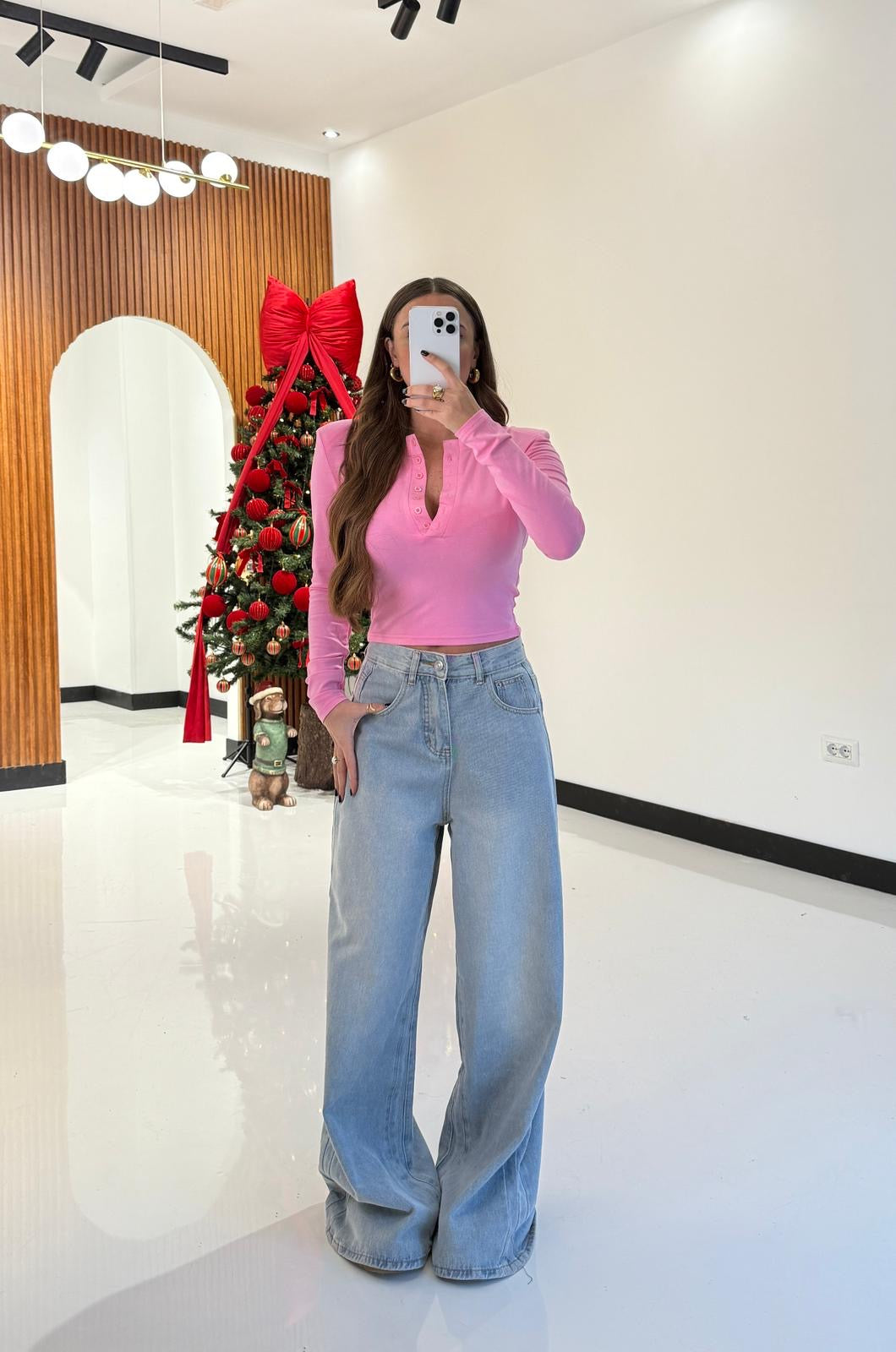 Jeans da donna in denim in tela fissa non elasticizzato e veste regolarmente la propria taglia e la modella indossa taglia S