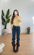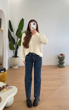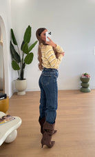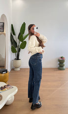 Jeans da donna in denim, tessuto semi elasticizzato, sfrangiato sul finale, veste regolarmente la propria taglia e la modella indossa taglia XS.