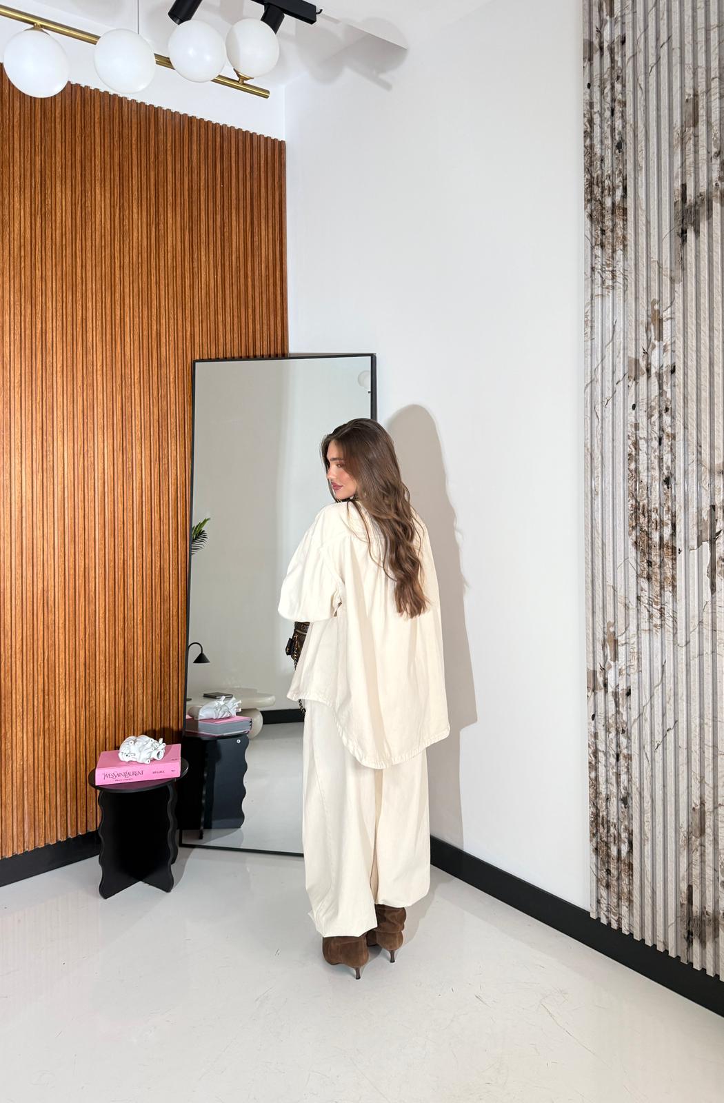 Jeans da donna in denim modello over, in tela fissa, con elastico fisso sul finale. Veste regolarmente la propria taglia, la modella indossa taglia S ed è alta 1,65 e pesa 52/53 kg.
