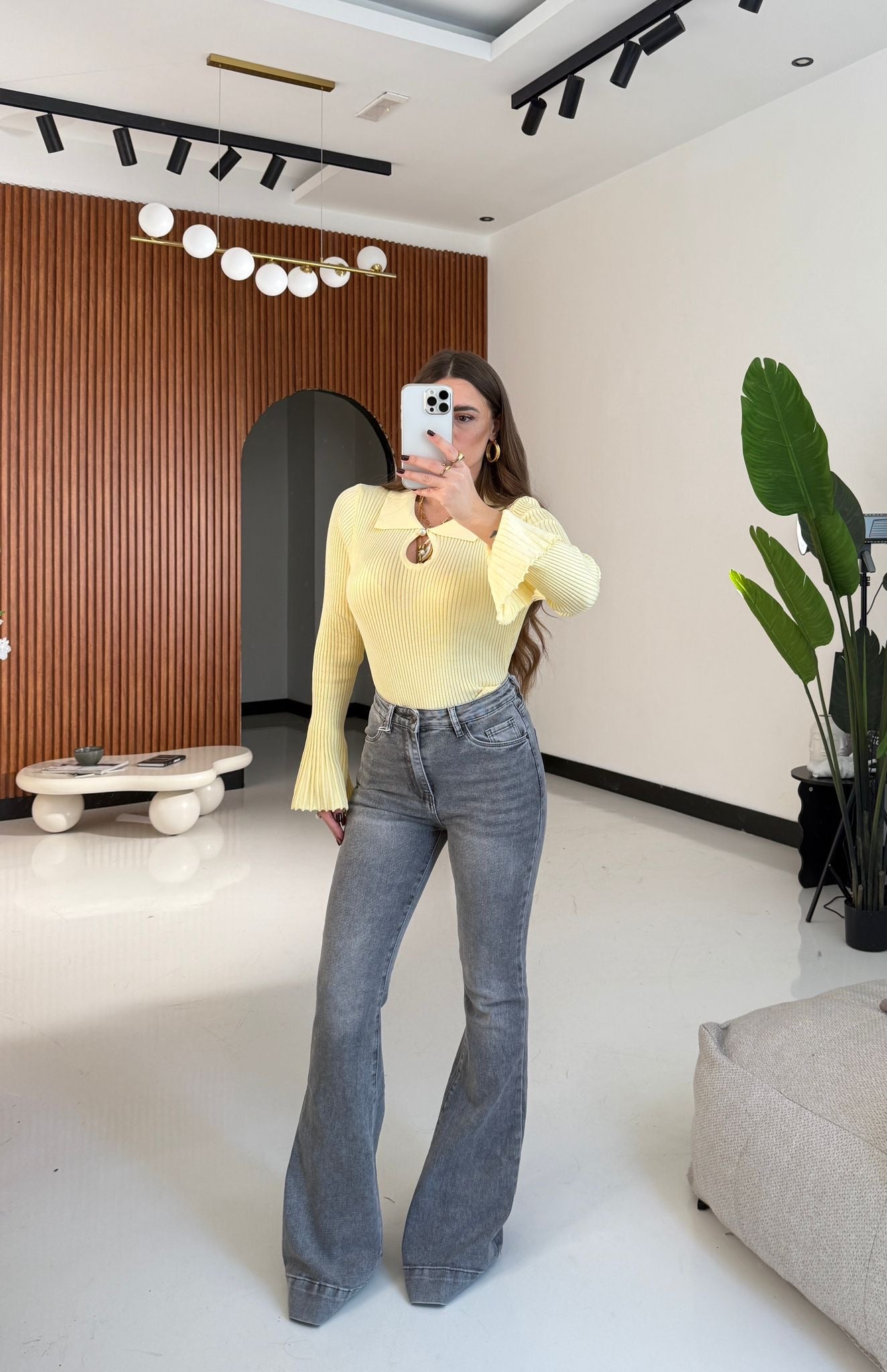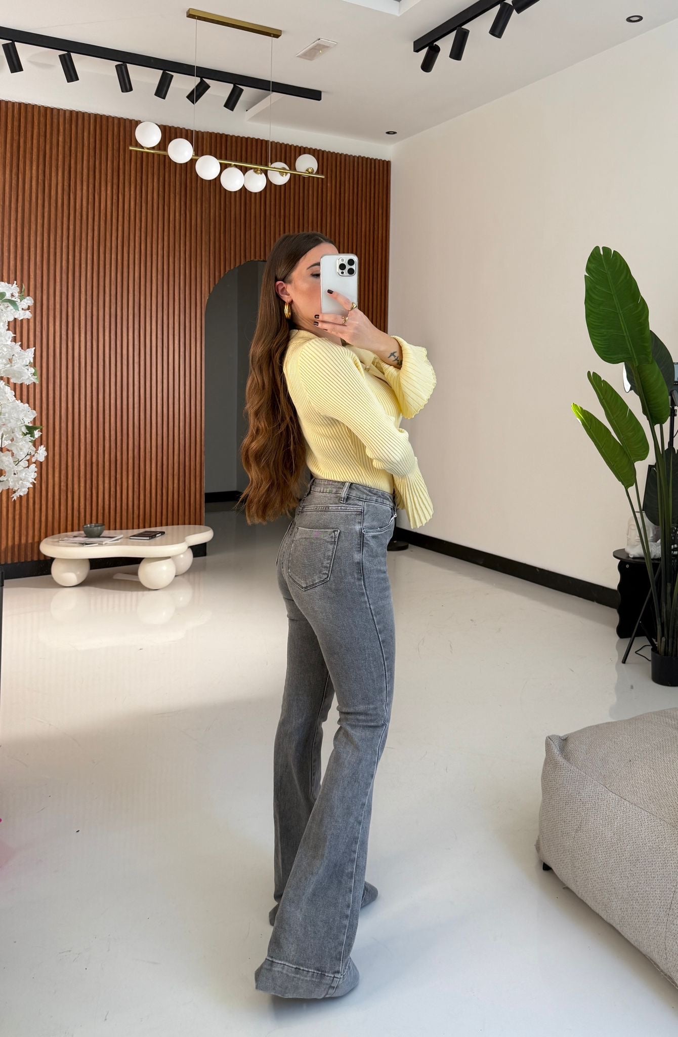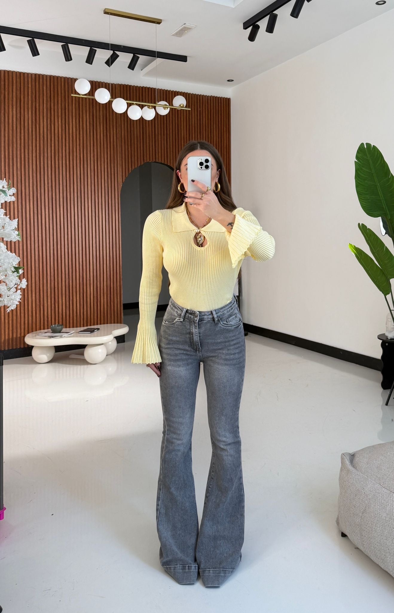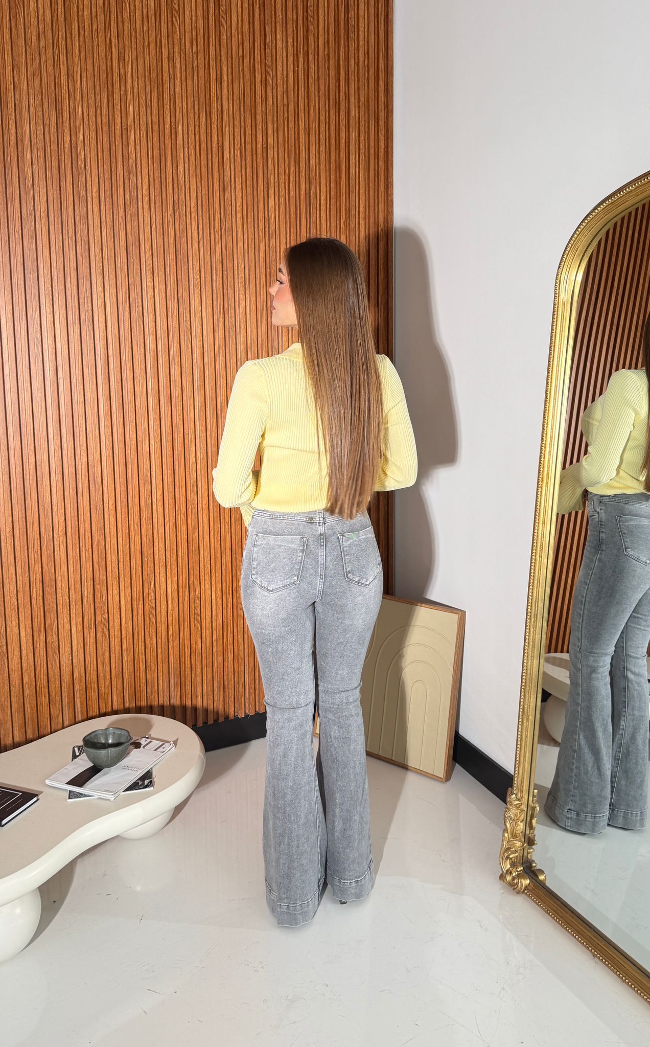 Jeans da donna a zampa, tessuto elasticizzato. Veste regolarmente la propria taglia, la modella indossa taglia XS ed è alta 1,65 e pesa 52/53kg .