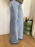 Jeans da donna in denim tessuto elasticizzato ma veste regolarmente la propria taglia e la modella indossa taglia XS