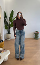 Jeans da donna in denim tessuto elasticizzato ma veste regolarmente la propria taglia e la modella indossa taglia XS
