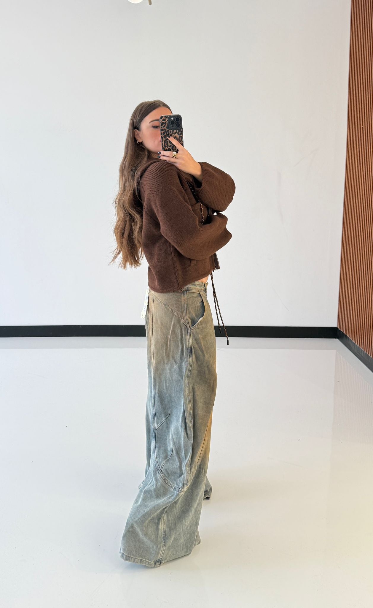 Jeans da donna effetto sabbiato in tela rigida e veste regolarmente la propria taglia e la modella indossa taglia S