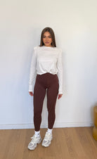 Leggings da donna in lycra tessuto contenitivo elasticizzato, veste regolarmente la propria taglia e Giusy indossa taglia XS
