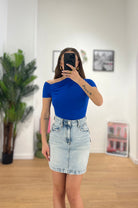 Maglia da donna in lycra elasticizzato con scollo asimmetrico sul davanti e vestira' bene fino ad una M/L