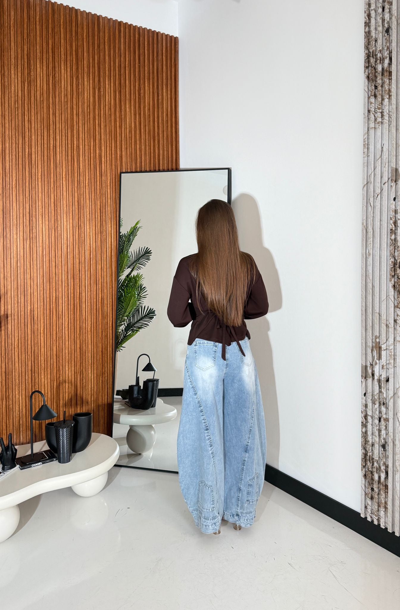 Maglia in cotone con bottoncini apribili sul davanti e maniche a sbuffo con polsini, vestirà bene fino ad una M/L piena e la modella è alta 1,65 cm e pesa 52/53 kg