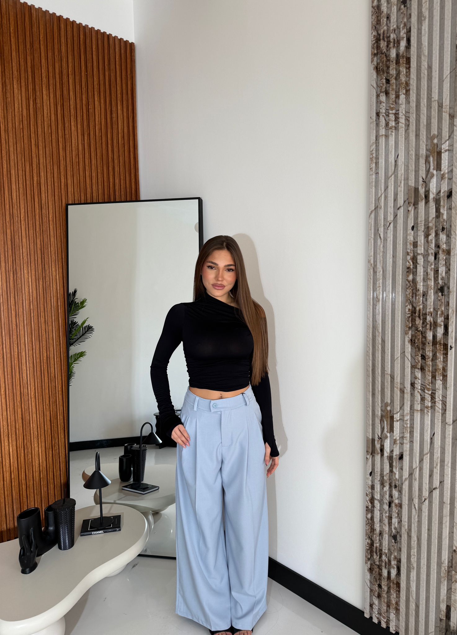 maglia da donna in licra con arricciatura sulla parte iniziale,si può' indossare anche in modo simmetrica