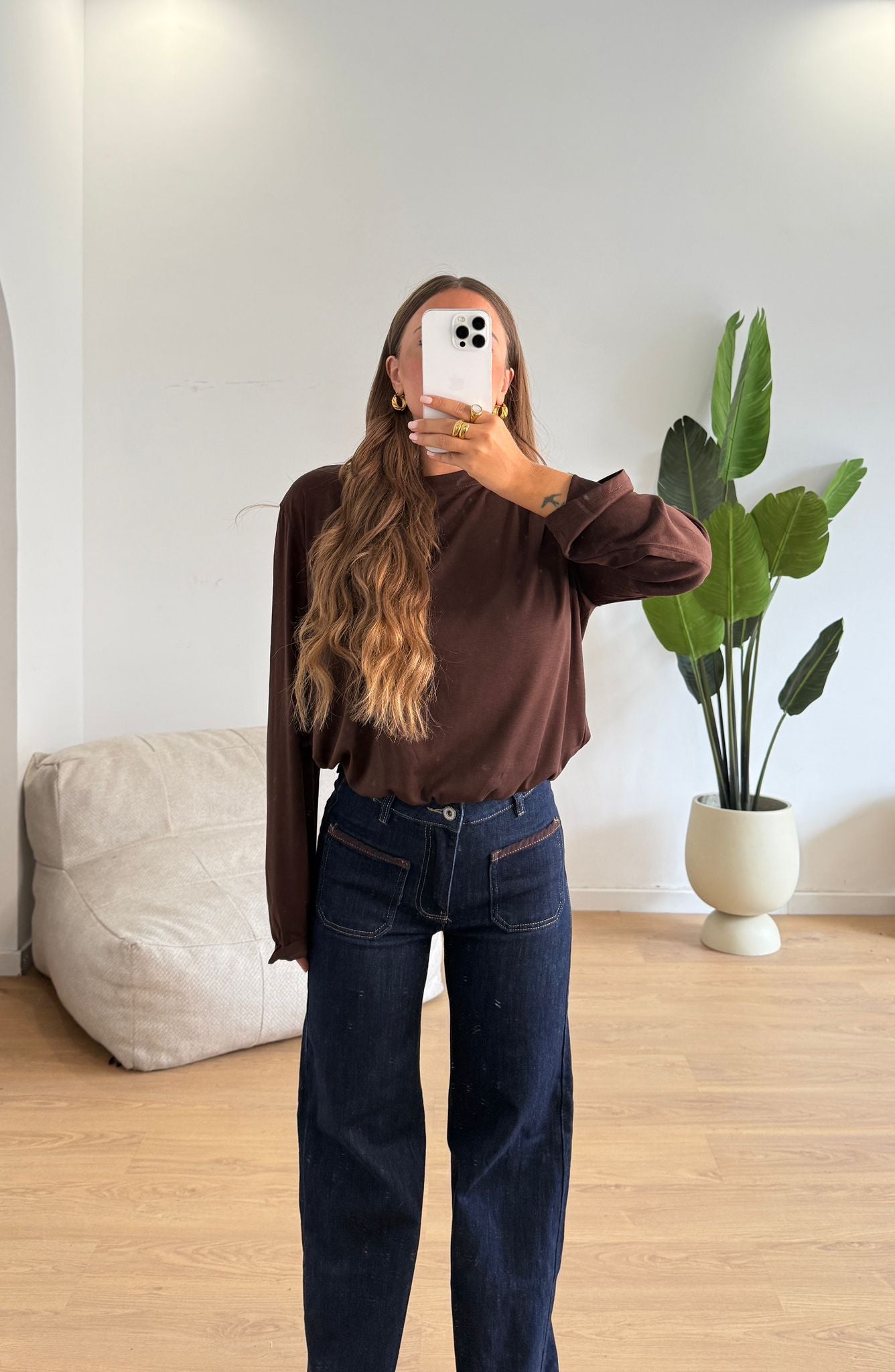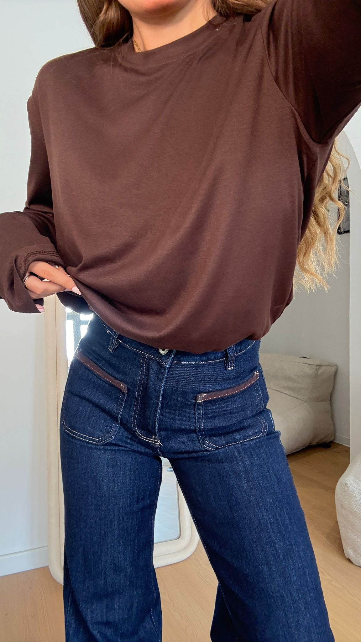 Maglia da donna in cotone tessuto elasticizzato e veste regolarmente la propria taglia e la modella indossa taglia S