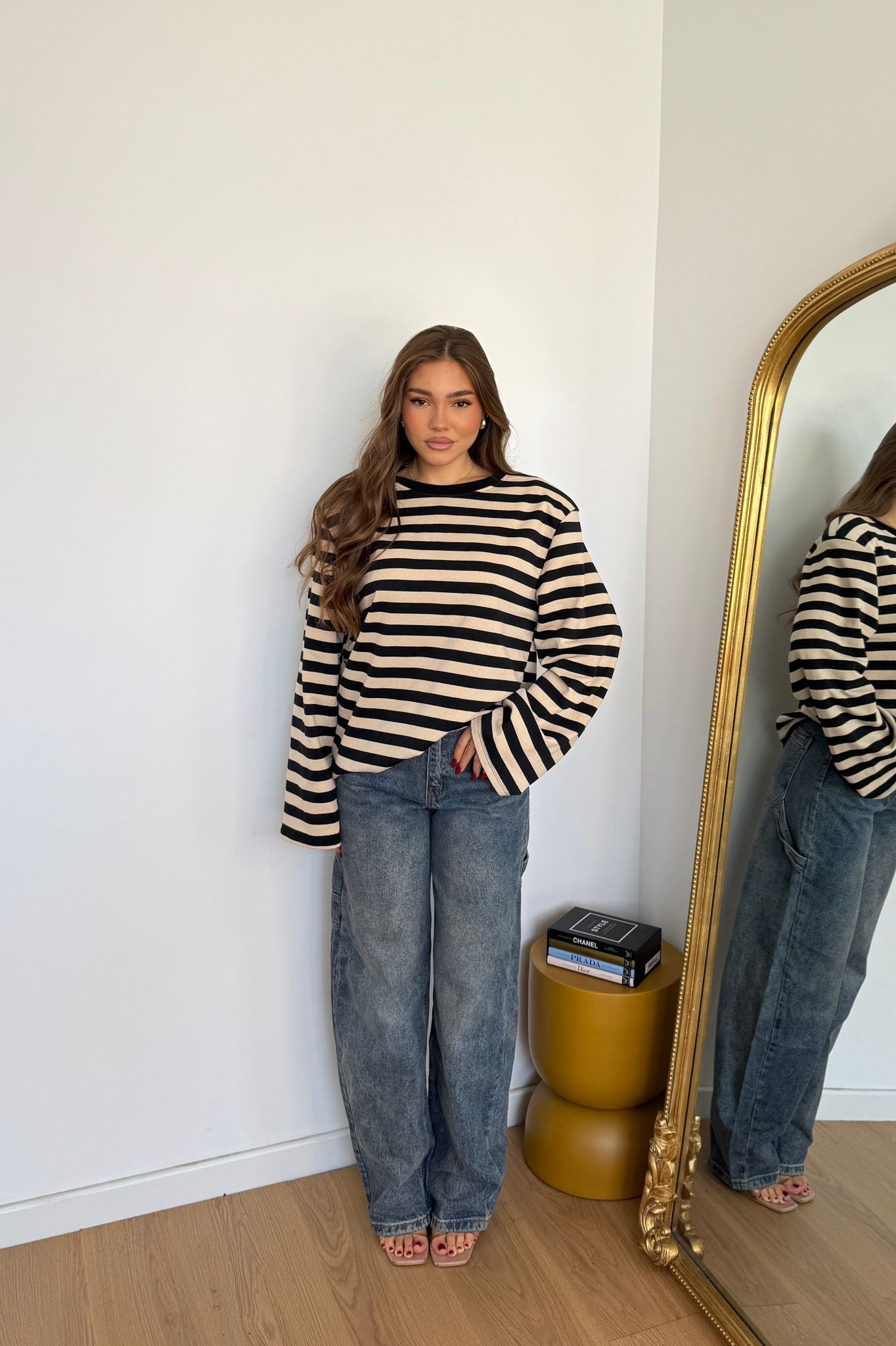 Maglia da donna in cotone con spalline imbottite e manica larga e vestirà bene fino ad una M/L piena