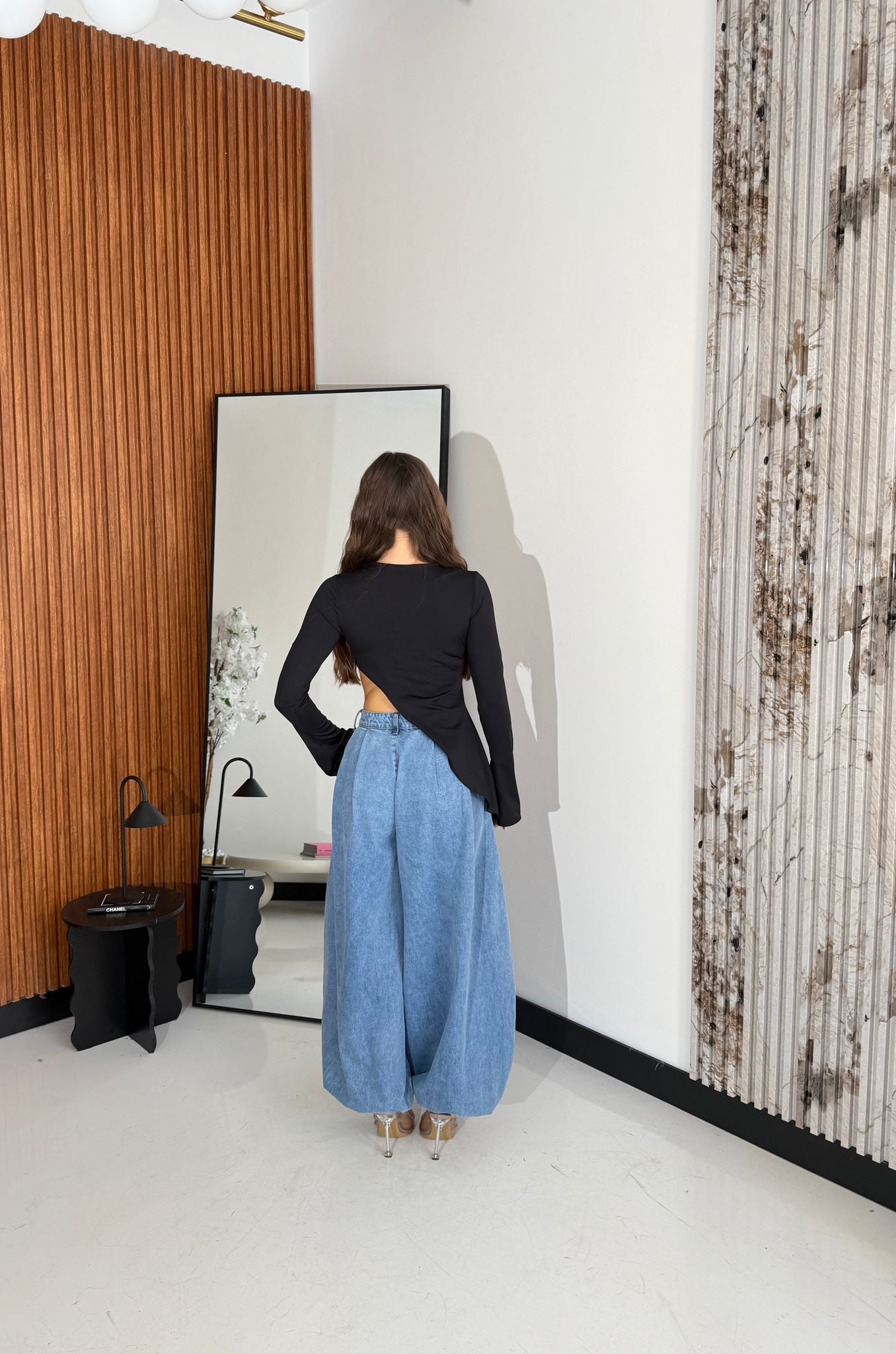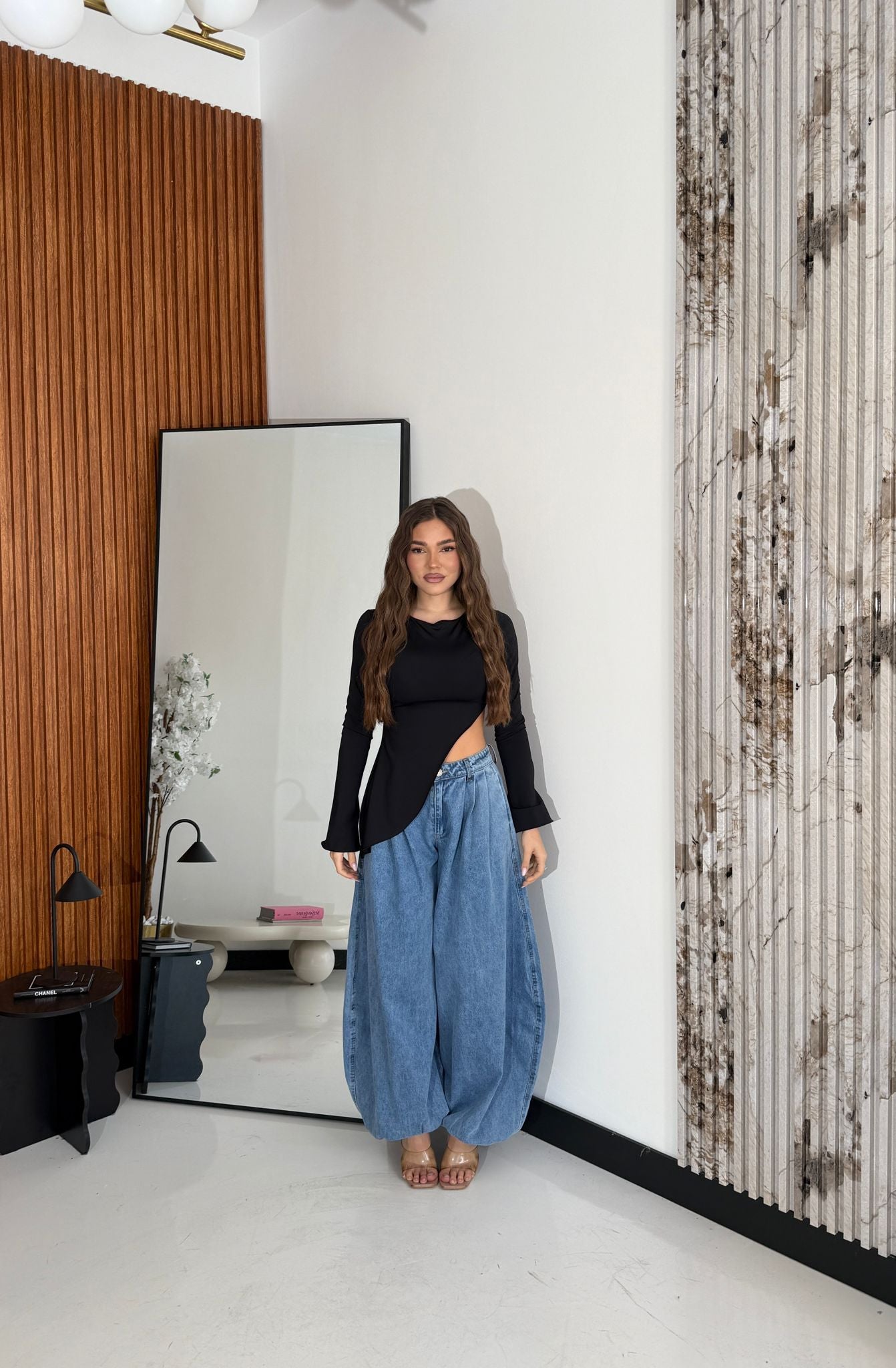 Maglia da donna in lycra, con apertura asimmetrica. Taglia unica, tessuto elasticizzato, veste bene fino ad una taglia M piena. La modella è alta 1,65 e pesa 52/53kg.