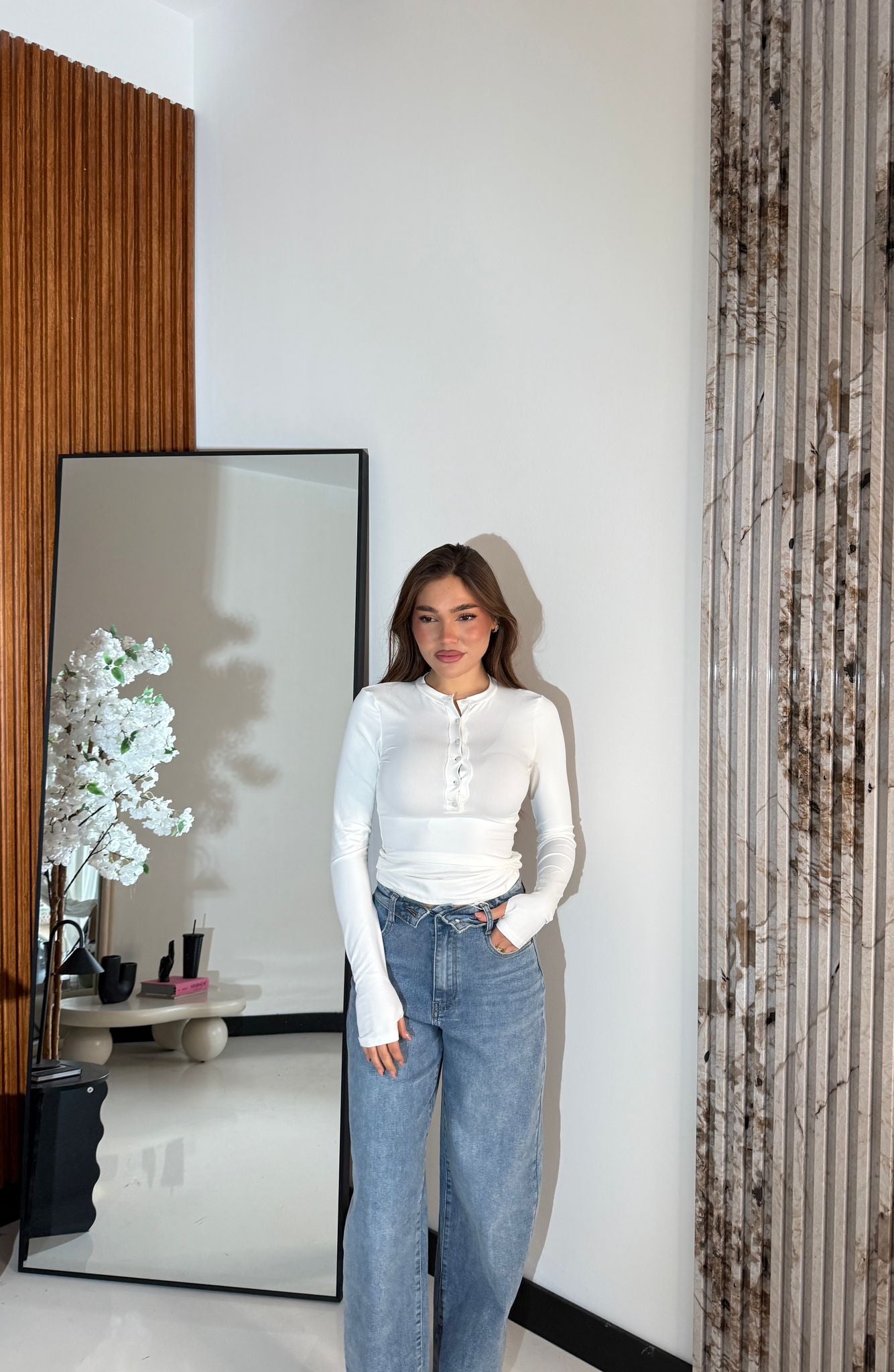 Maglia da donna in lycra con bottoncini apribili sul davanti, lunghezza basic ed è un tessuto elasticizzato. Vestirà bene fino ad una M/L piena. La modella è altra 1,65m e pesa 52/53