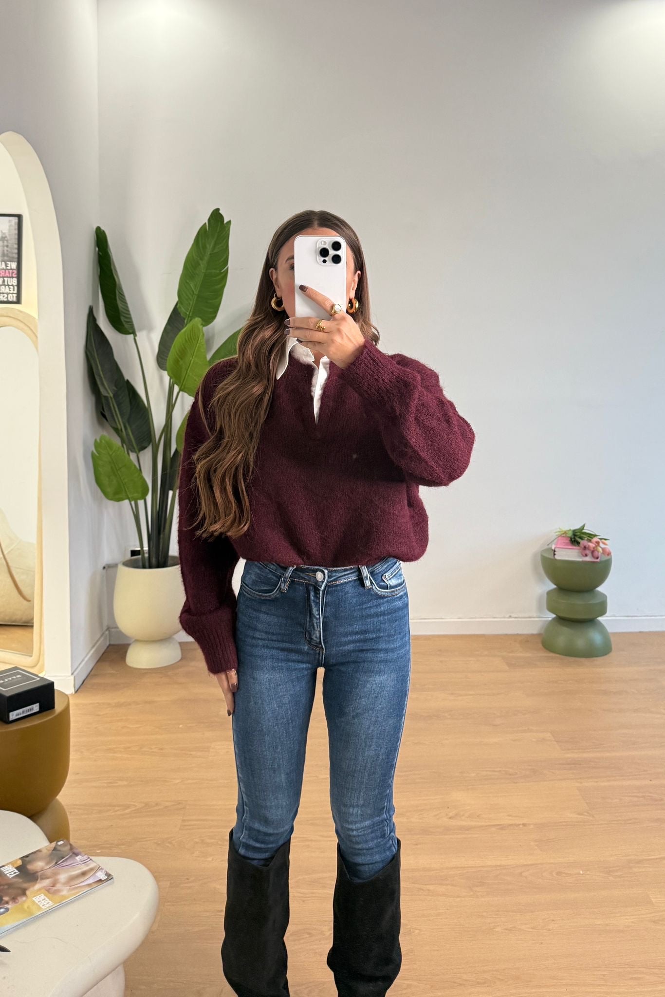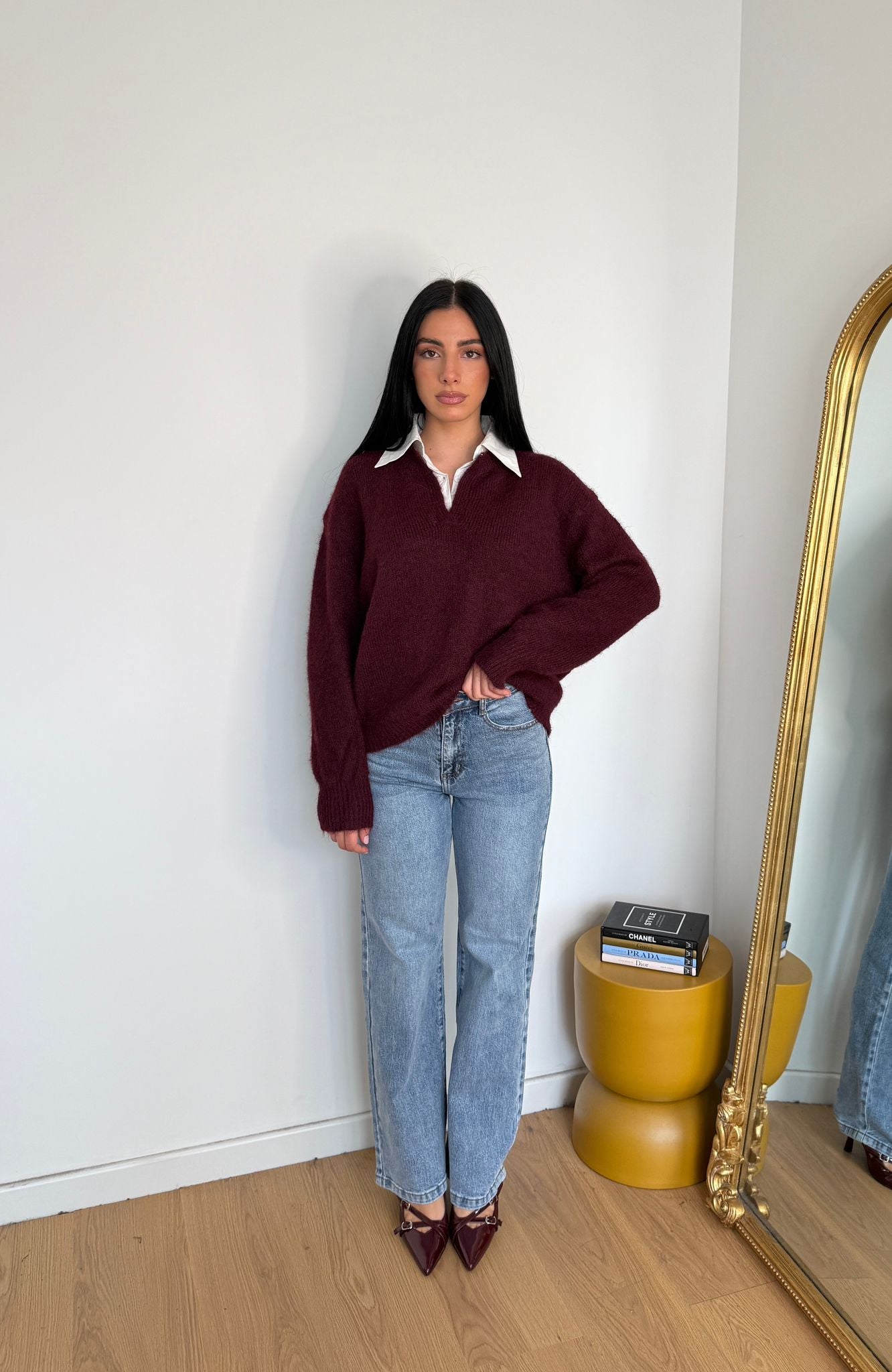 Maglioncino da donna con effetto camicia, vestibilità oversize e vestirà bene fino ad una M/L