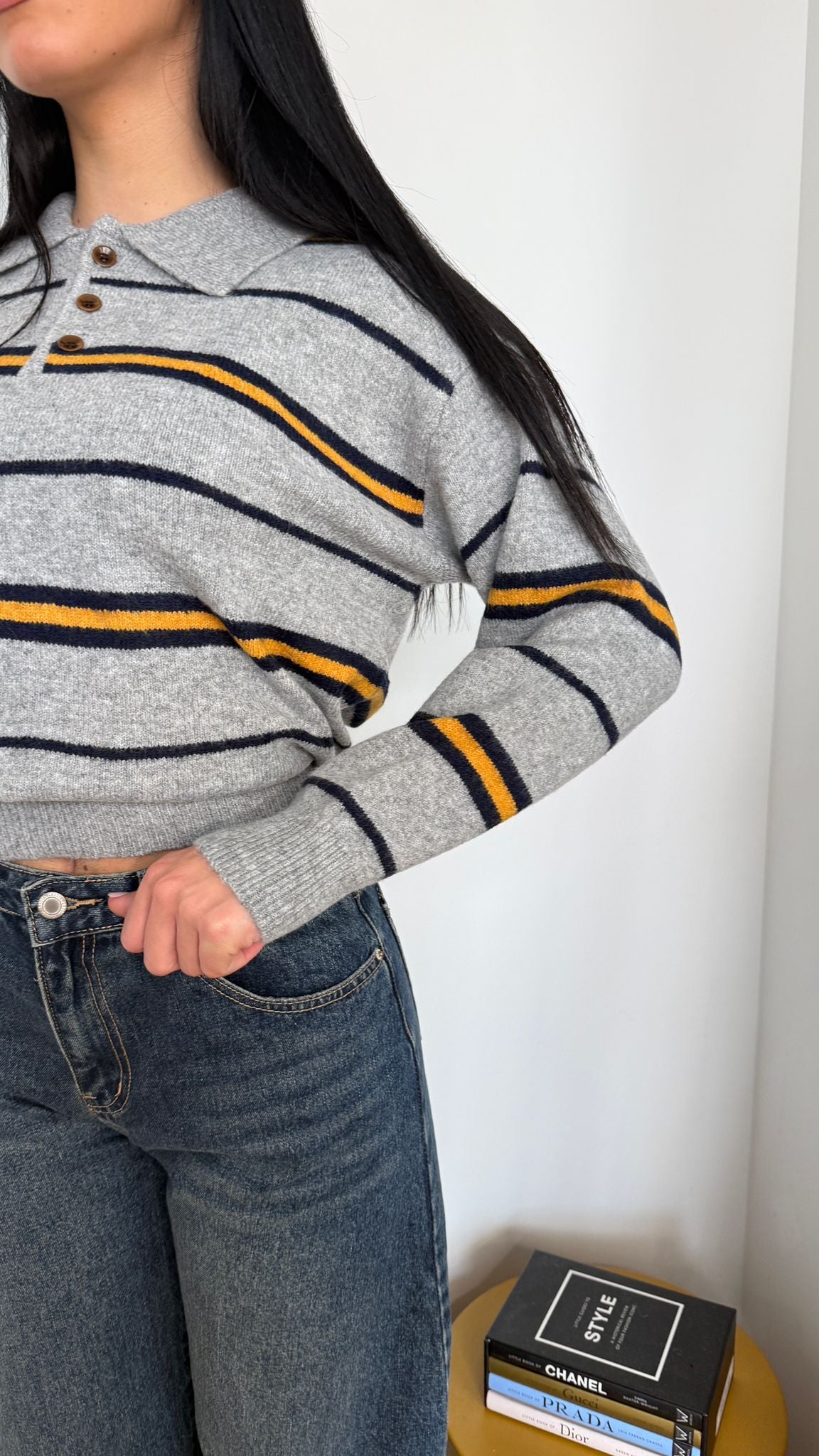 Maglioncino da donna vestibilità leggermente over. È vestita bene fino a d una M/L