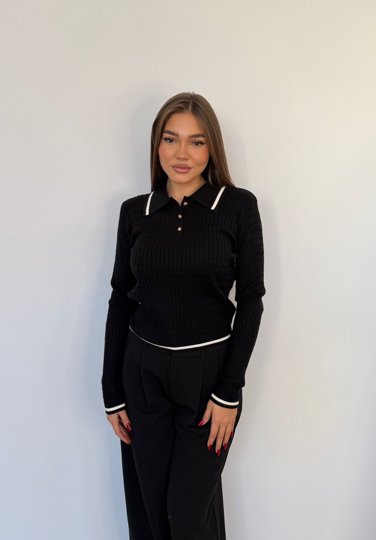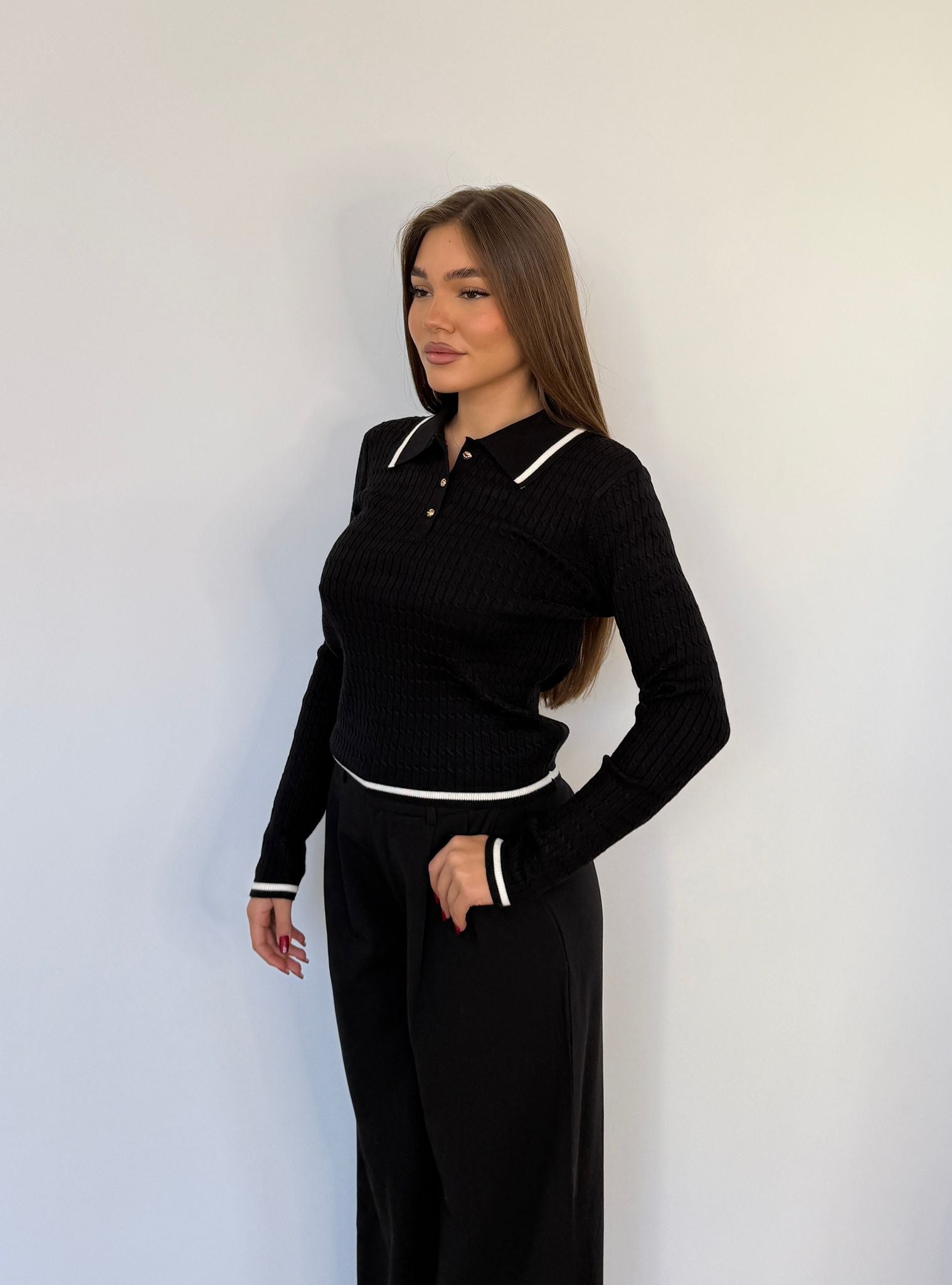 Maglioncino da donna in caldo cotone con bottoncini sul davanti, tessuto elasticizzato e vestirà bene fino ad una M/L