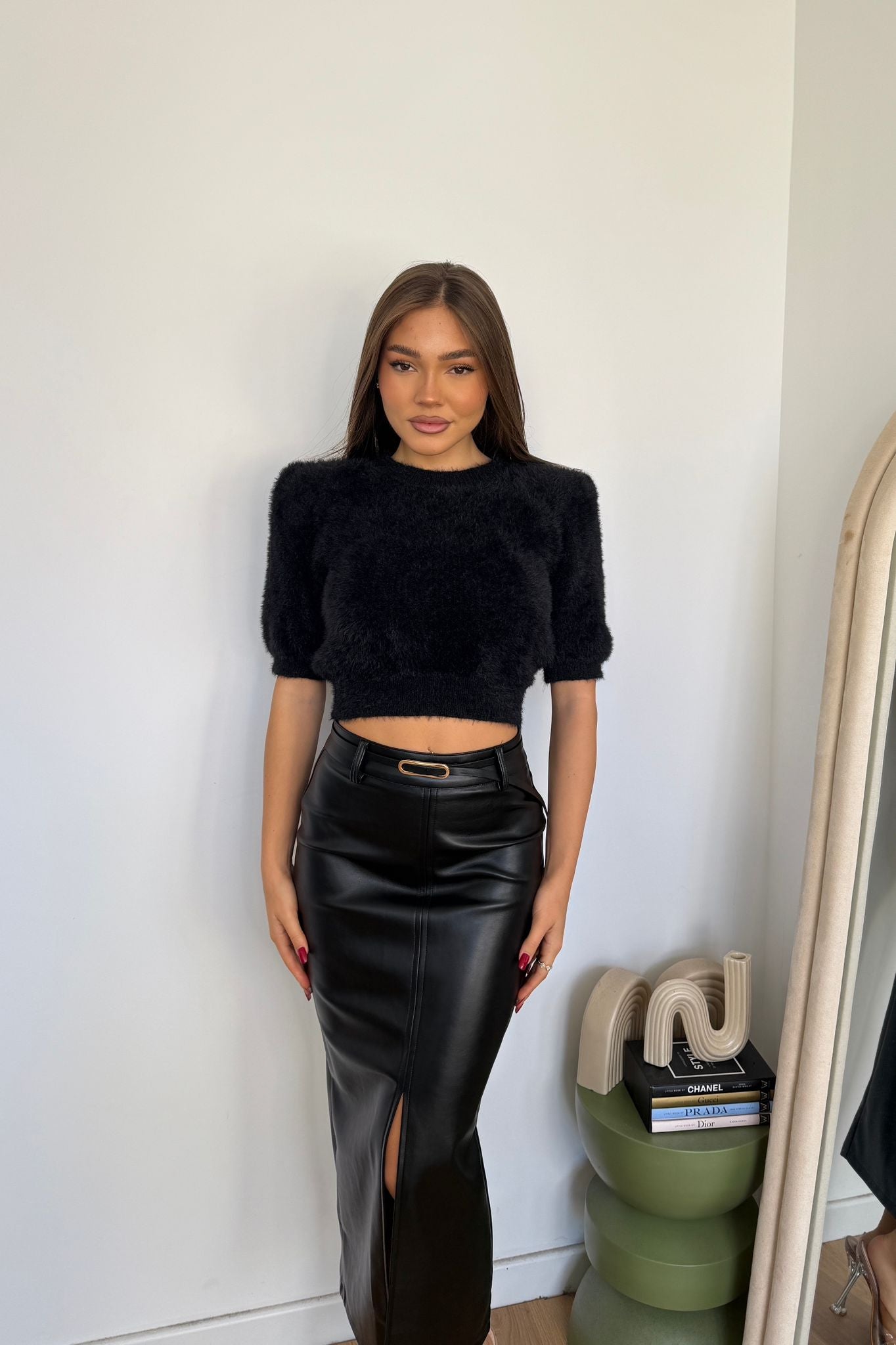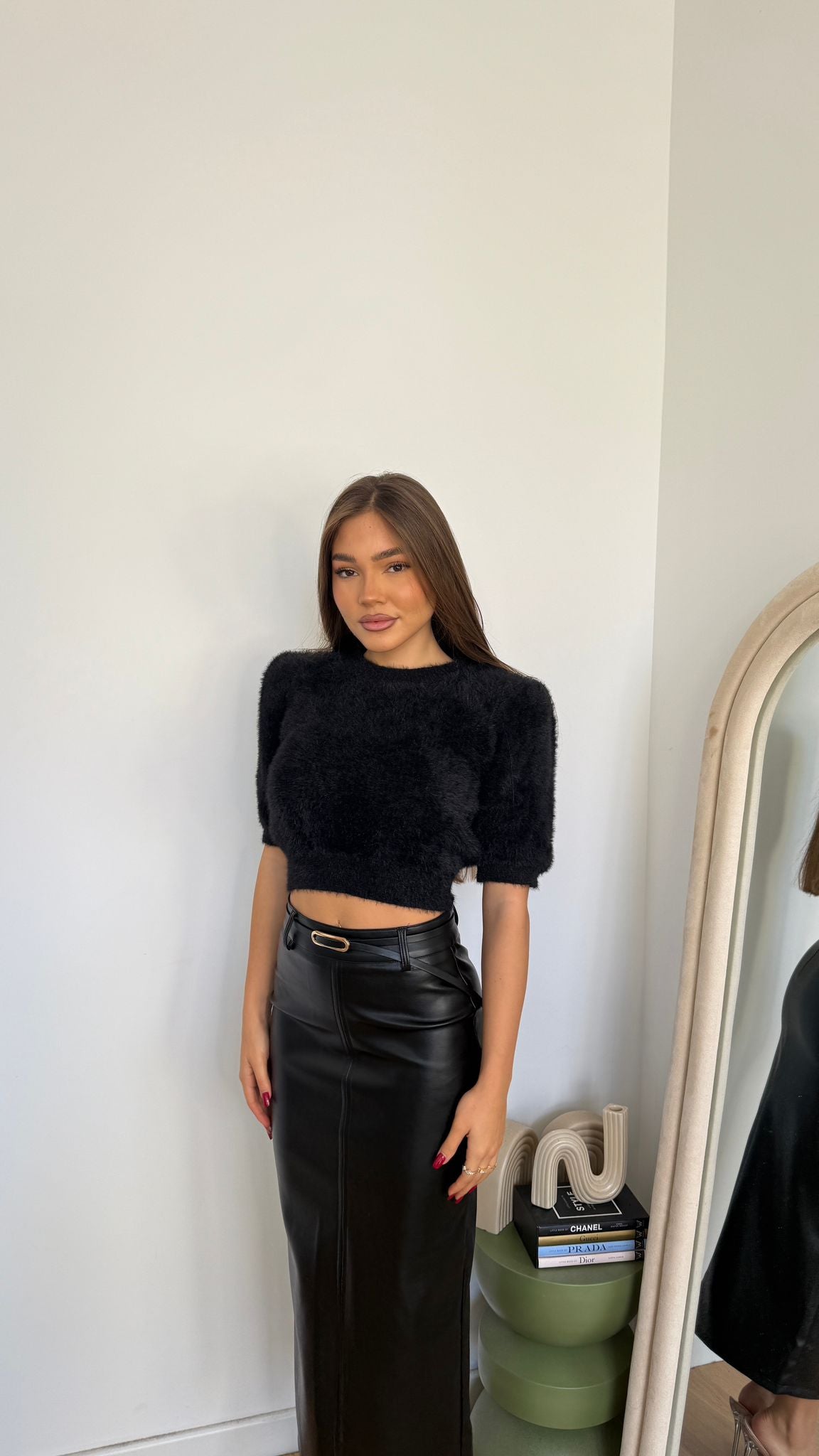 Maglioncino da donna leggermente crop  con spalline imbottite, tessuto elasticizzato e vestirà bene fino ad una M/L