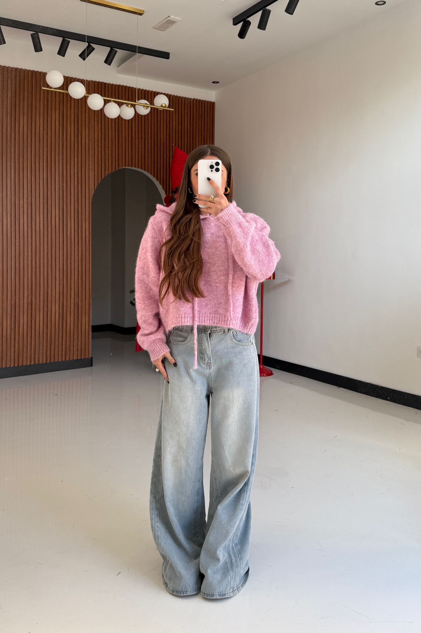 Maglione da donna in lana rasata con cappuccio vestibilità oversize e vestirà bene fino ad una M/L piena