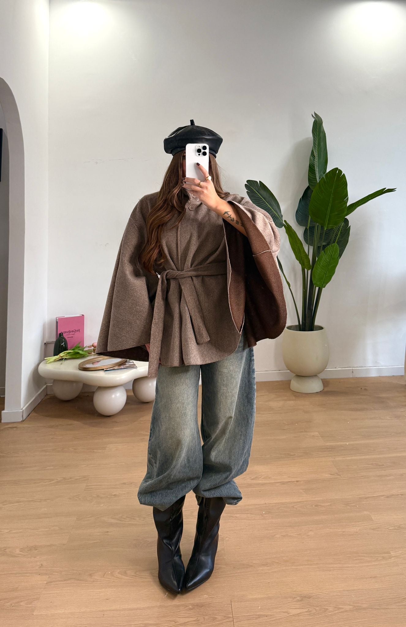 Mantella da donna con collo alto e chiusura con bottoncini e cintura compresa, vestirà bene fino a duna M/L