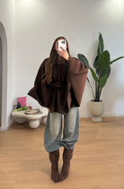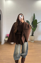 Mantella da donna con collo alto e chiusura con bottoncini e cintura compresa, vestirà bene fino a duna M/L