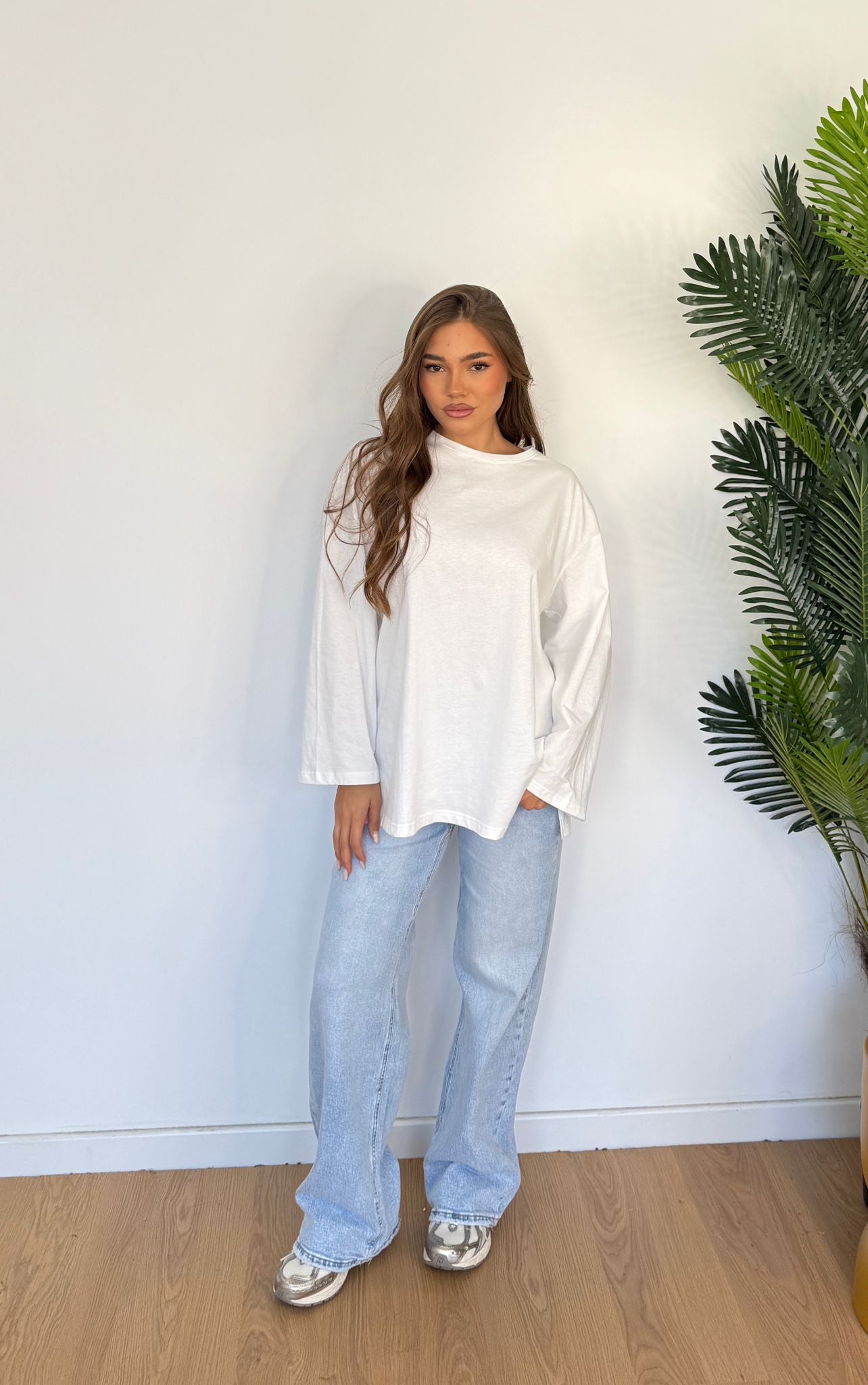 MaxiShirt da donna in cotone modello oversize, la modella in foto indossa taglia S.