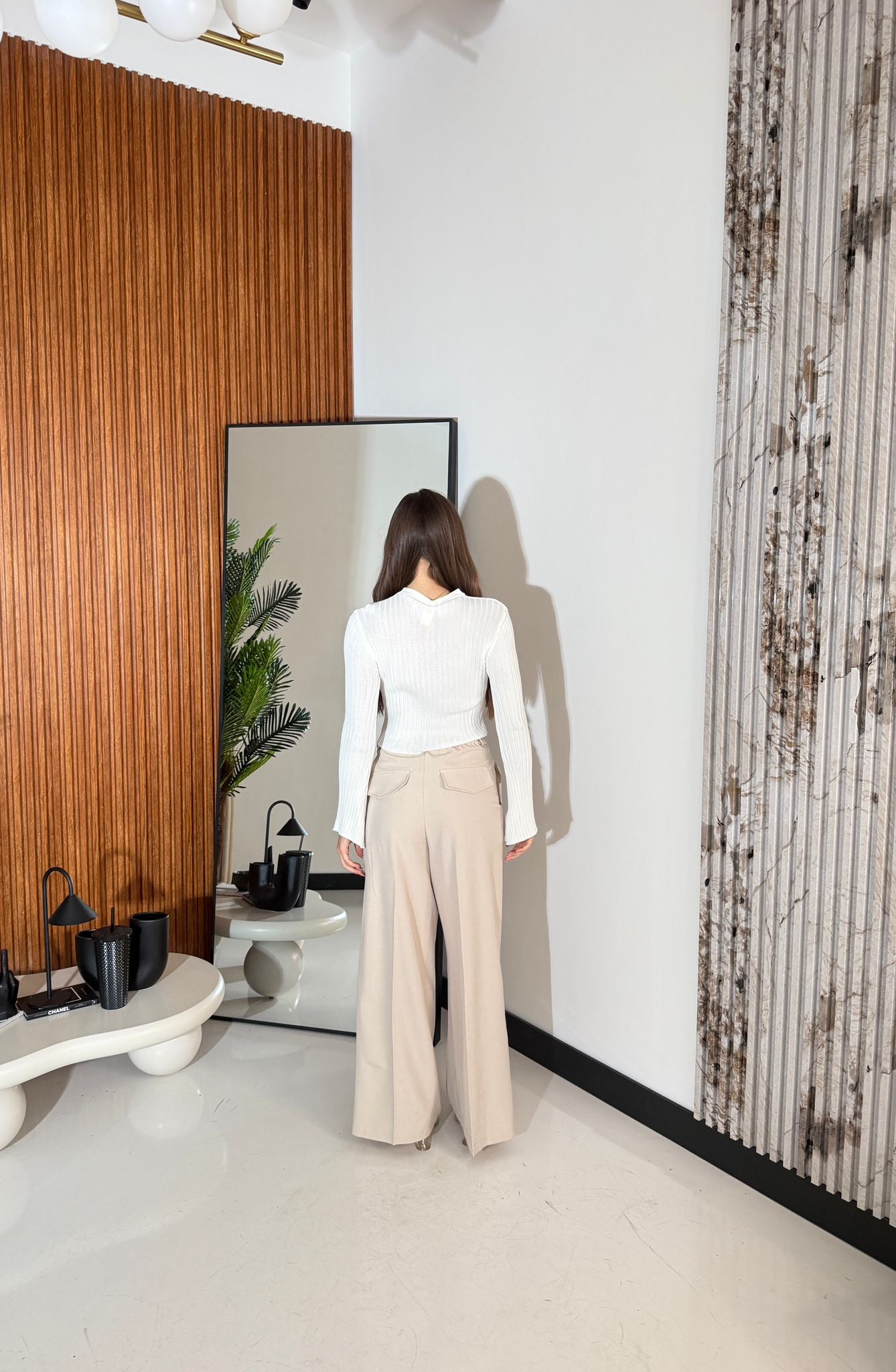 Pantalone da donna in cotone leggero con elastico in vita. Taglia unica, veste bene fino ad una taglia M/L. La modella è alta 1,65 e pesa 52/53.