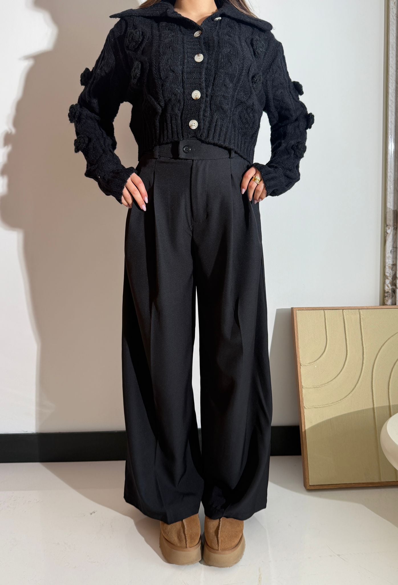 Pantalone da donna in cotone leggero con elastico in vita. Taglia unica, veste bene fino ad una taglia M/L. La modella è alta 1,65 e pesa 52/53.