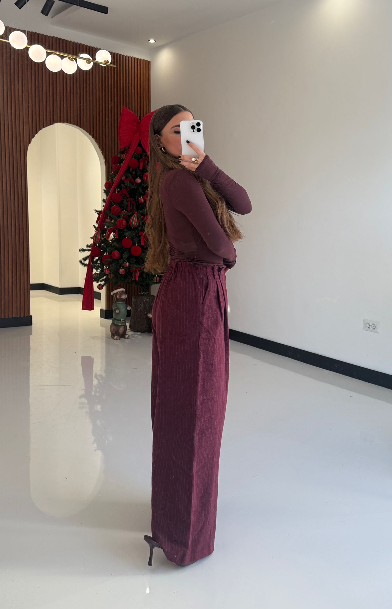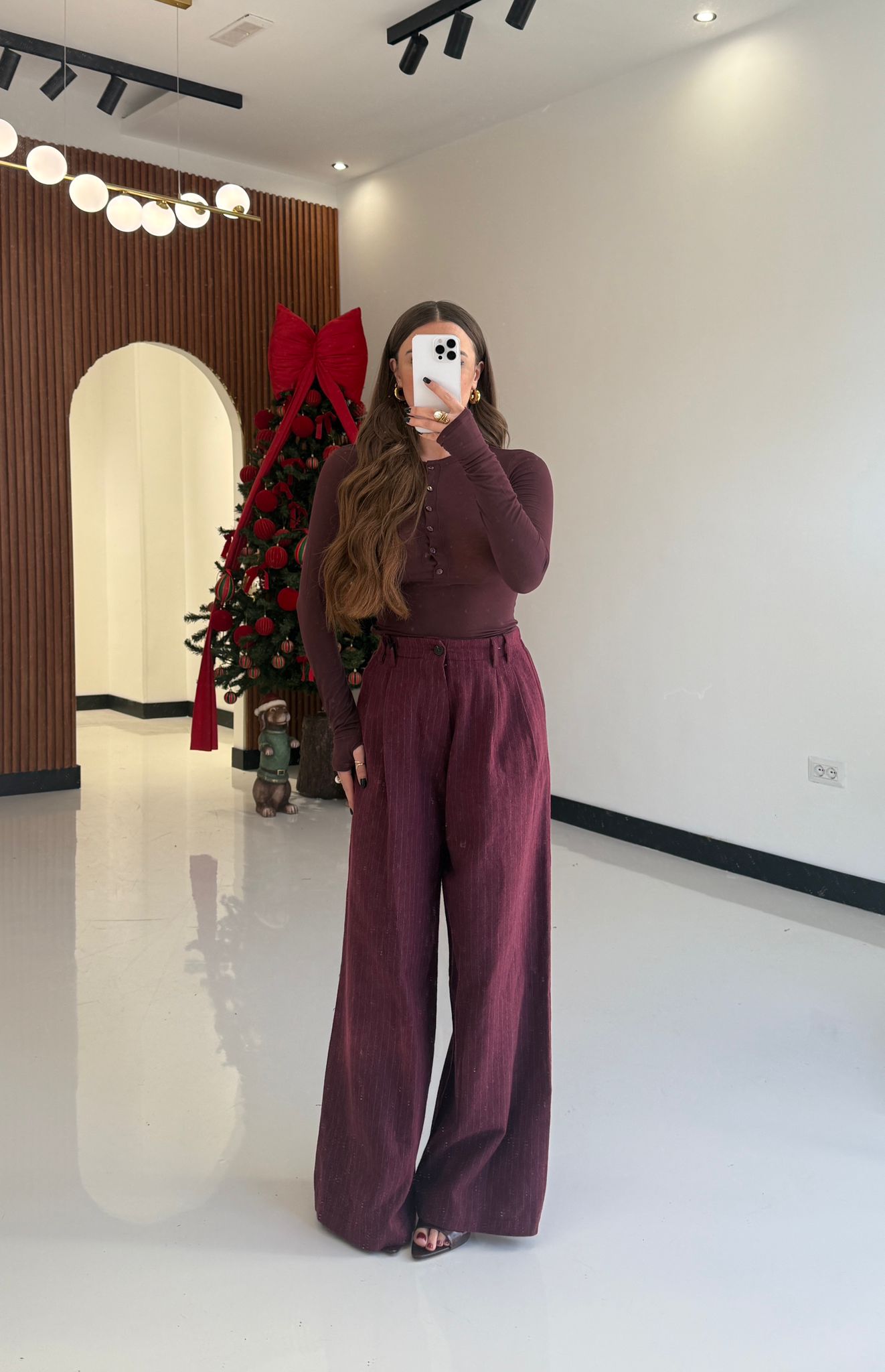 Pantalone da donna fantasia gessata con elastico sul retro e chiusura con bottoncino e zip sul davanti e vestirà bene fino ad una M/L