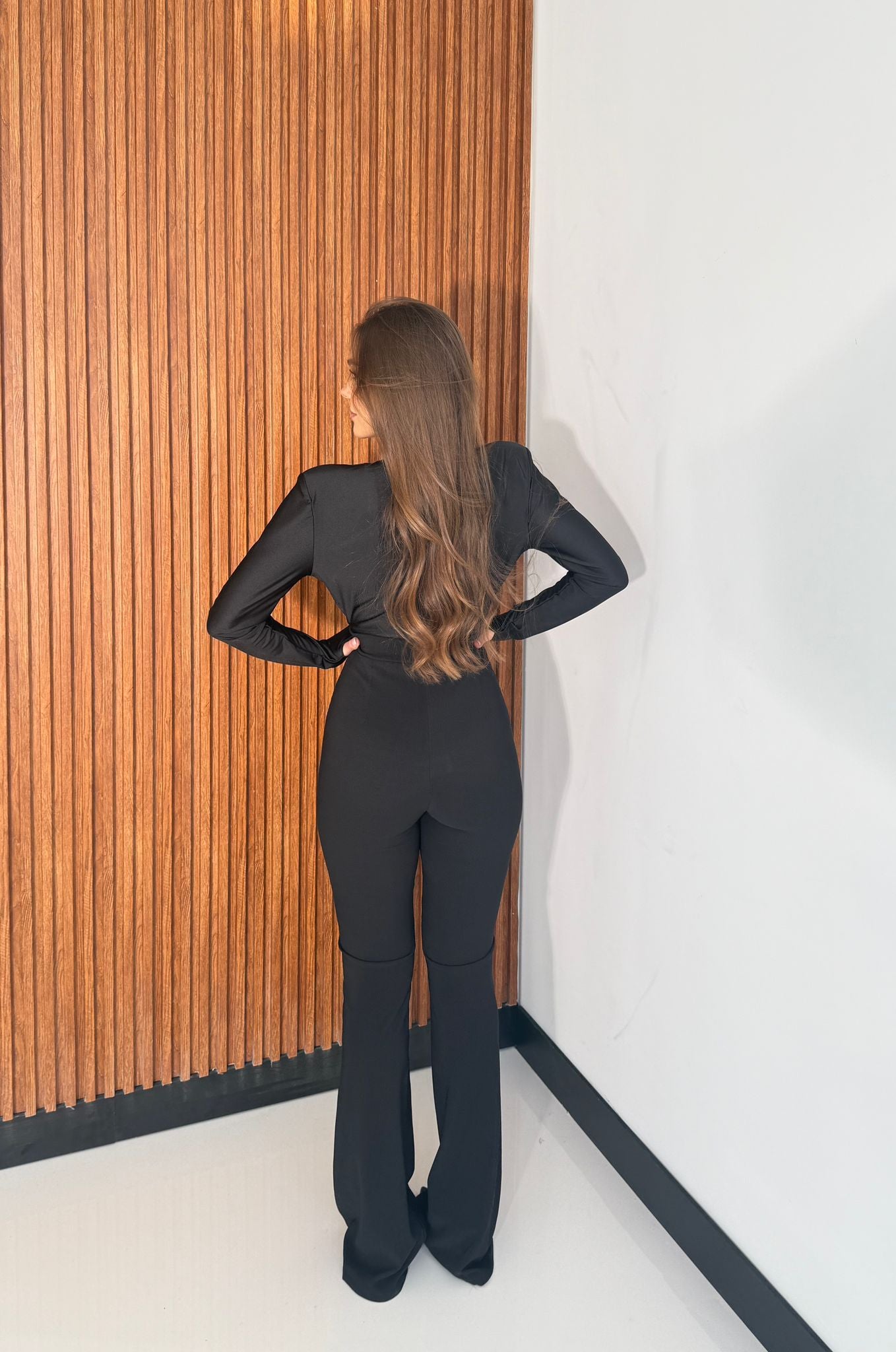 Pantalone da donna a zampa vita alta con elastico in vita interno e vestirà bene fino ad una M/L