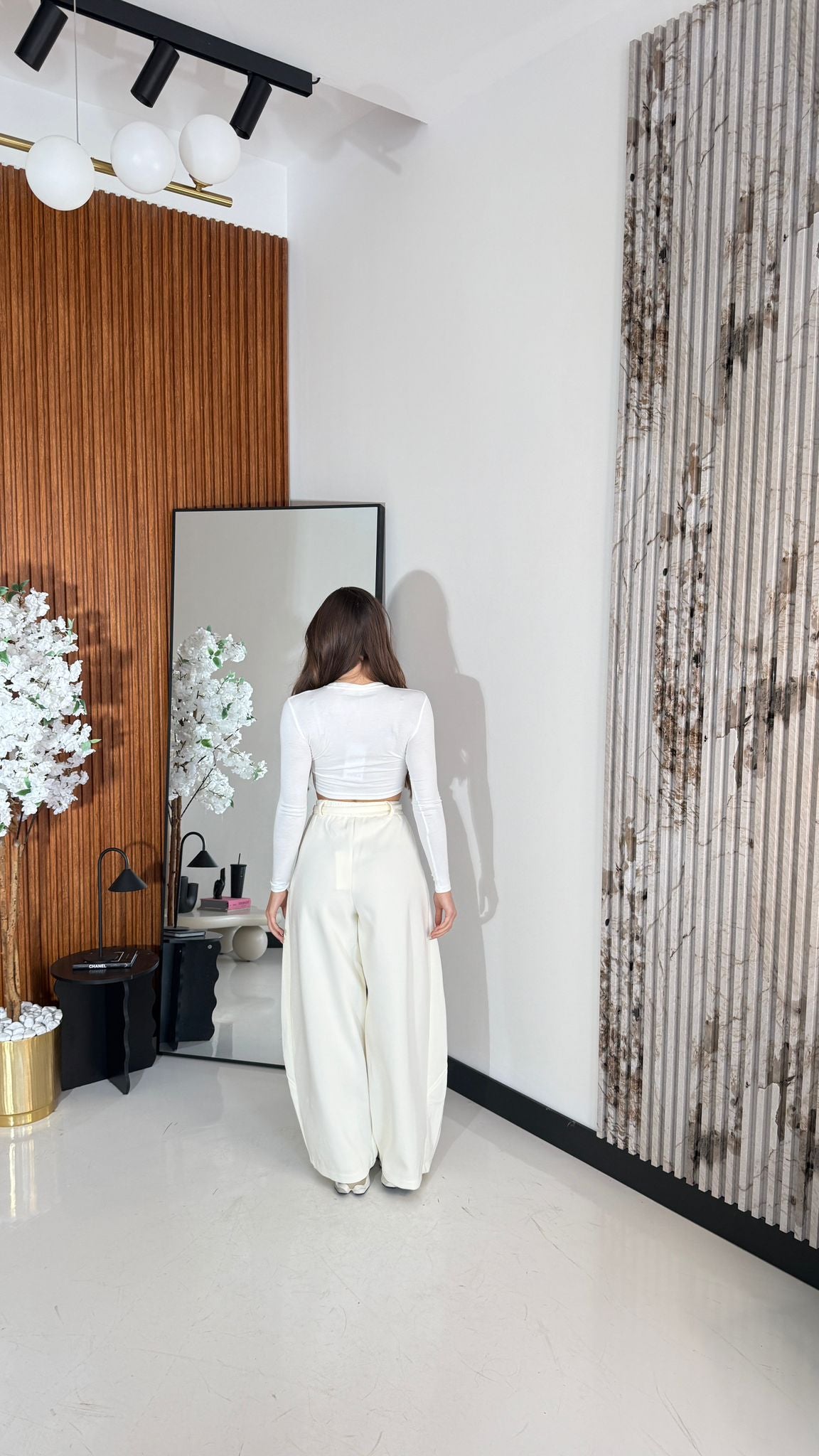Piantatura con elastico in vita e cinturino compreso, modello ballon con due tasche sul davanti. Veste bene la propria taglia e la modella indossa taglia XS ed è alta 1,65 cm e pesa 52/53 kg