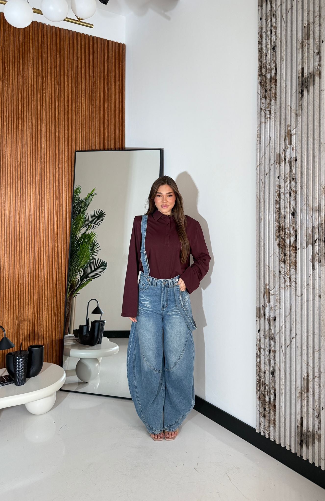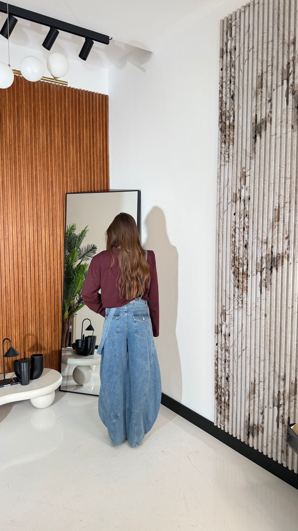 Salopette in denim in tela fissa modello ballon-fit e veste bene la propria taglia e la modella indossa taglia S ed è alta 1,65 cm e pesa 52/53 kg