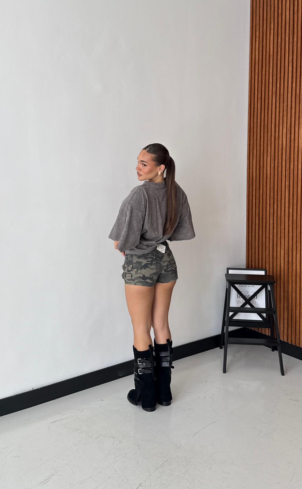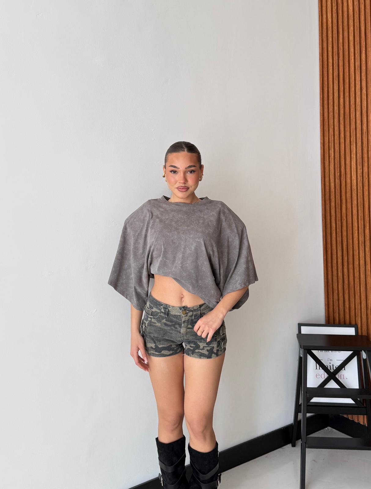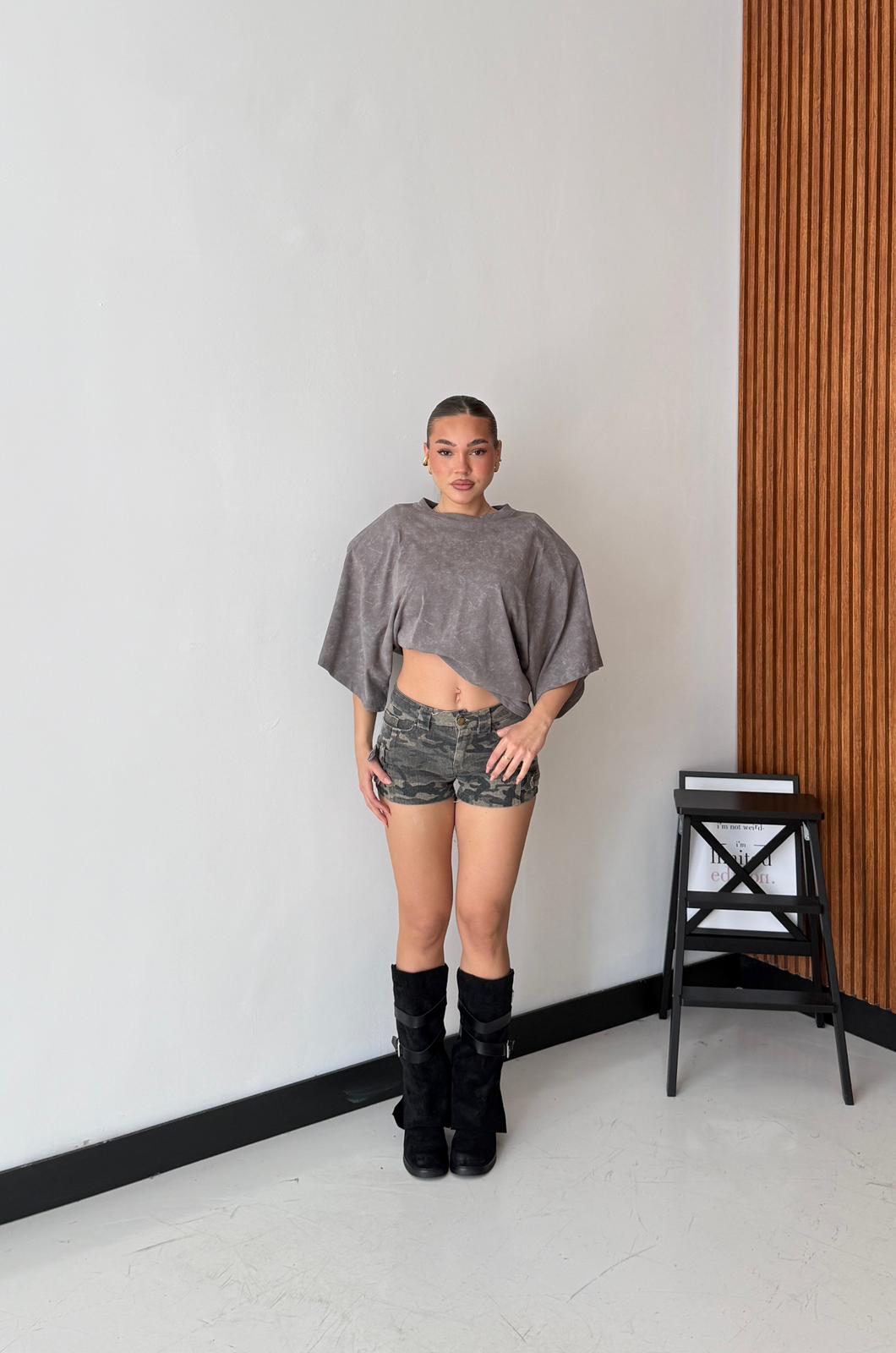 Shorts in tela fissa con cinturini laterali. Veste regolarmente la propria taglia, la modella indossa taglia S ed è alta 1,65 e pesa 52/53kg.