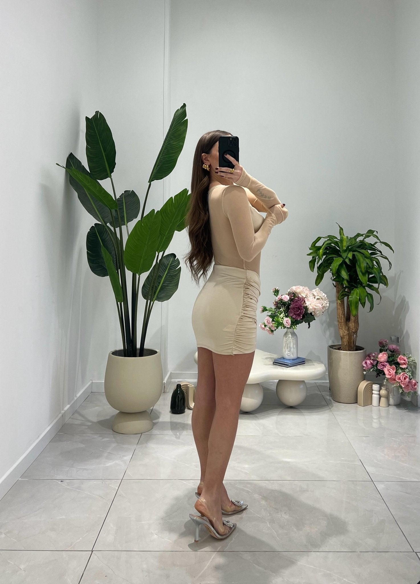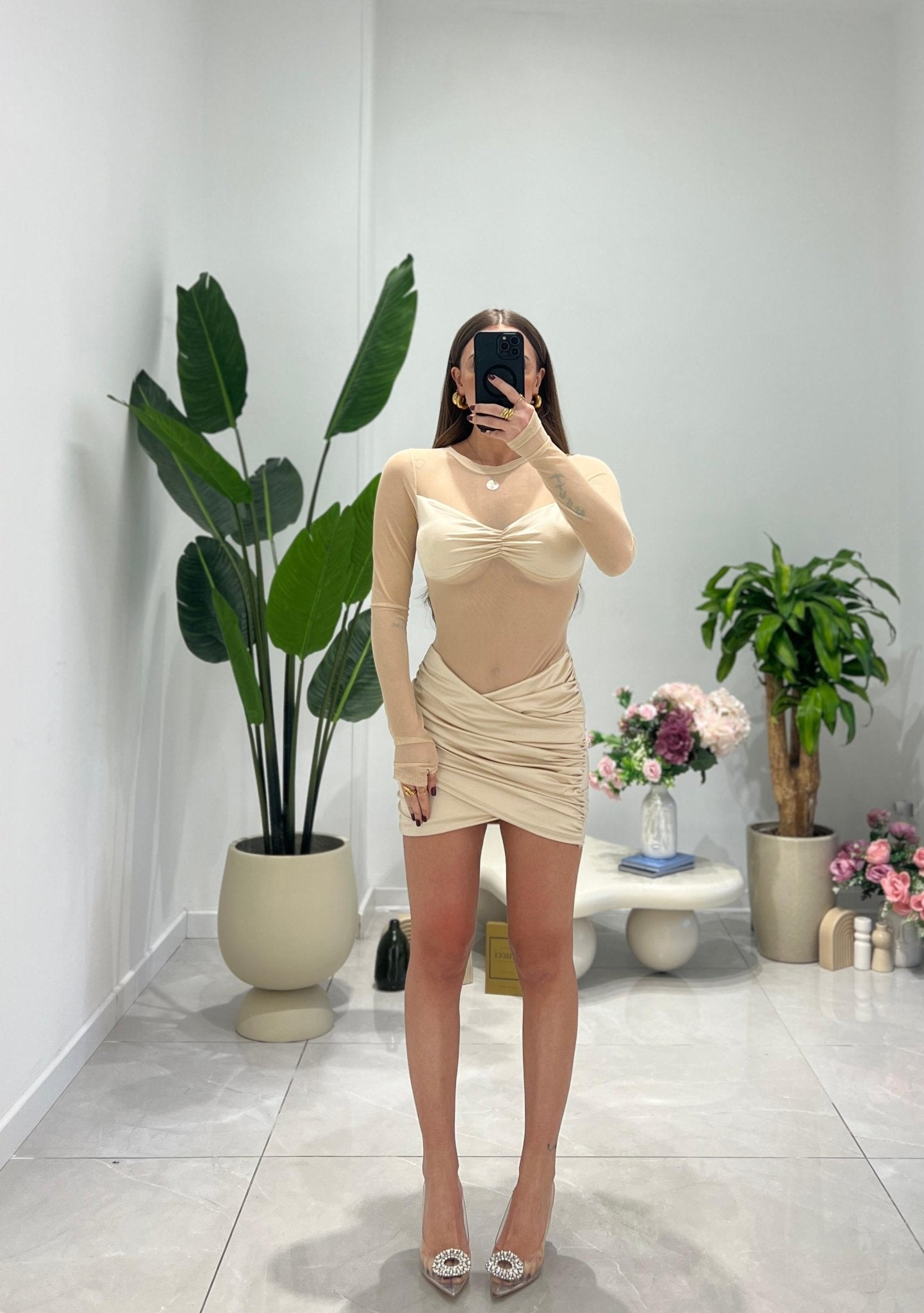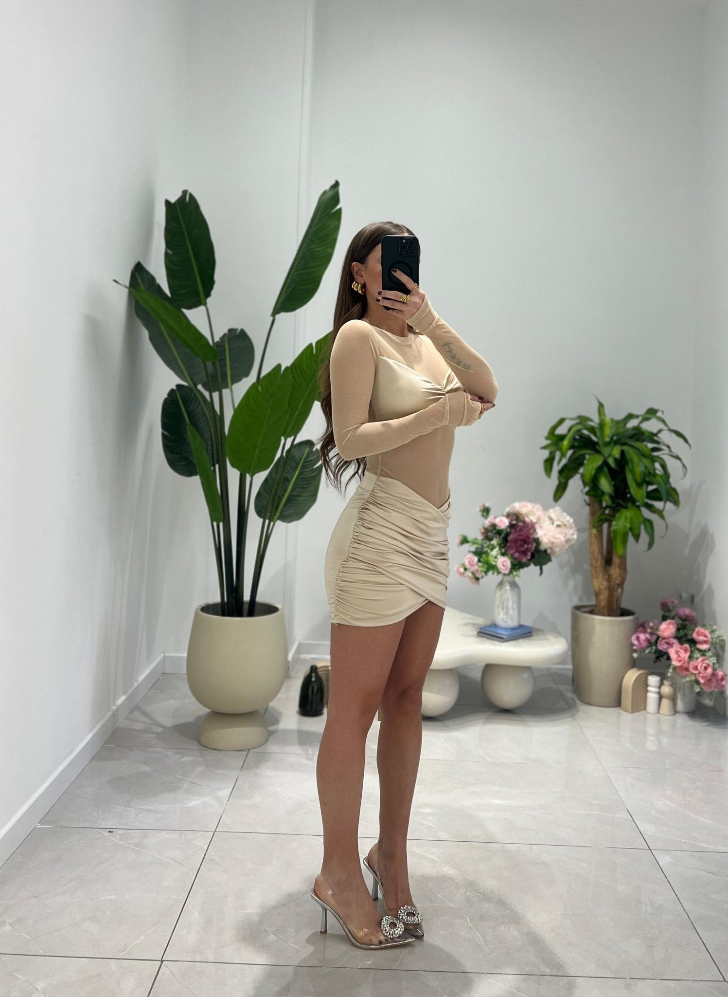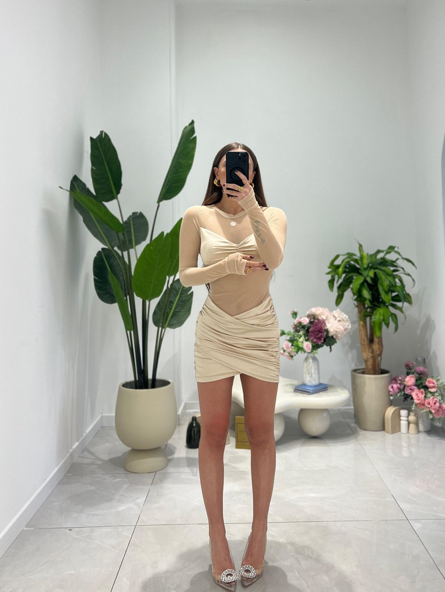 Vestito da donna low-cost con coppa imbottita, schiena scoperta e manica a guanto. Vestirà bene fino ad una 44 piena