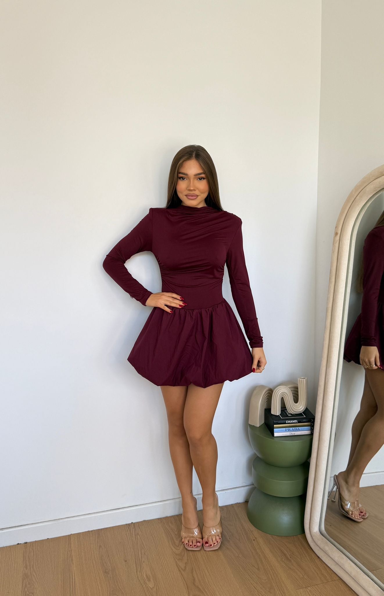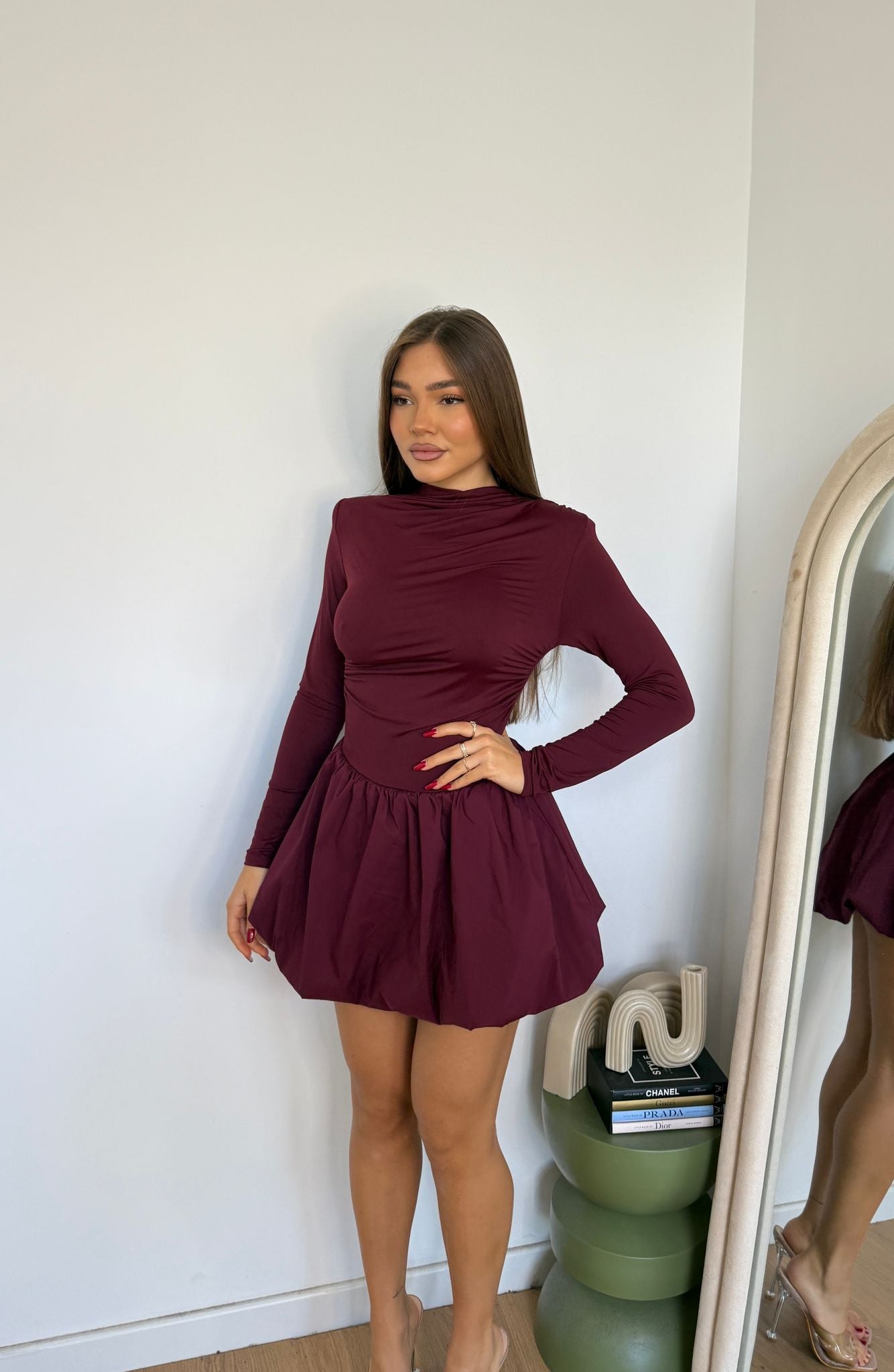 Vestito da donna con parte superiore in tessuto lycra e gonnellina a palloncino, veste bene fino a taglia M/L