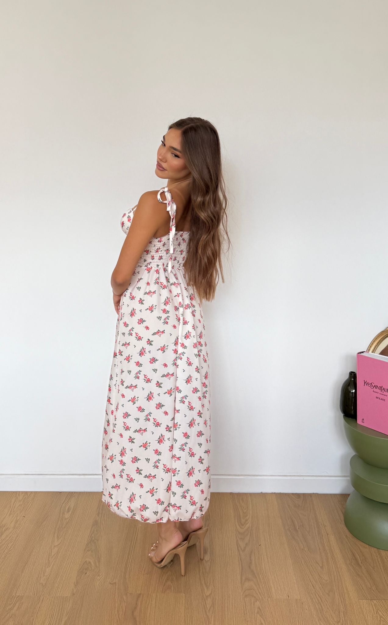Abito da donna a fantasia in cotone leggero con coppe imbottite e bretelle regolabili con lacci e vestirà bene fino ad una M/L